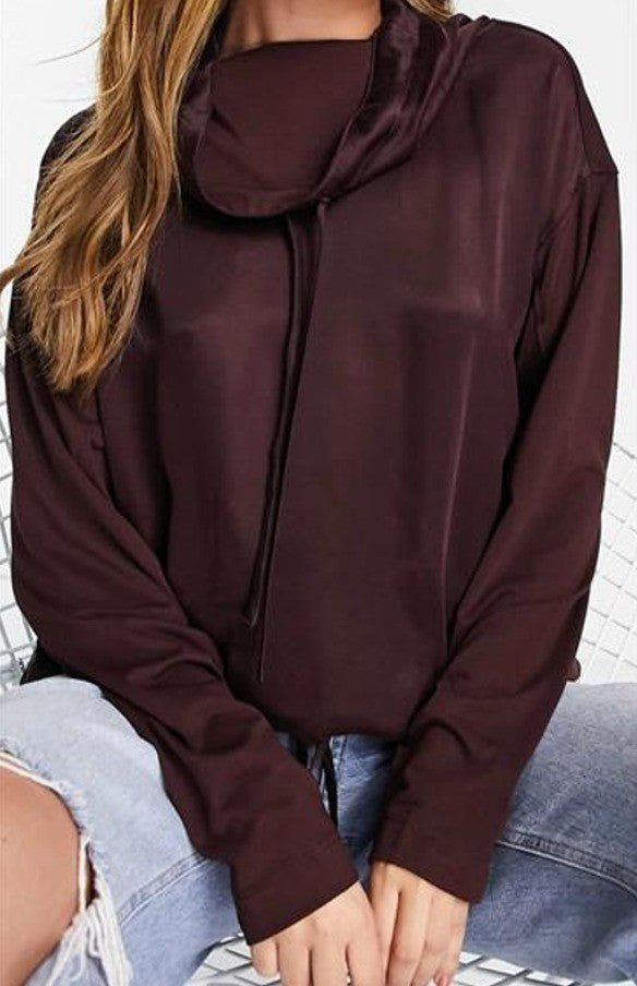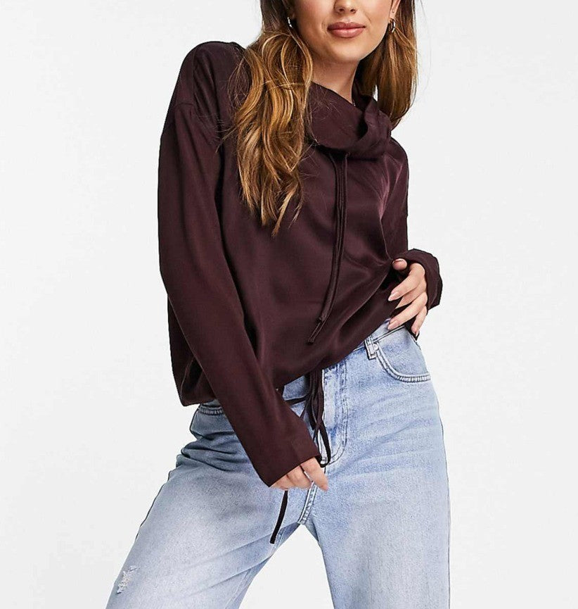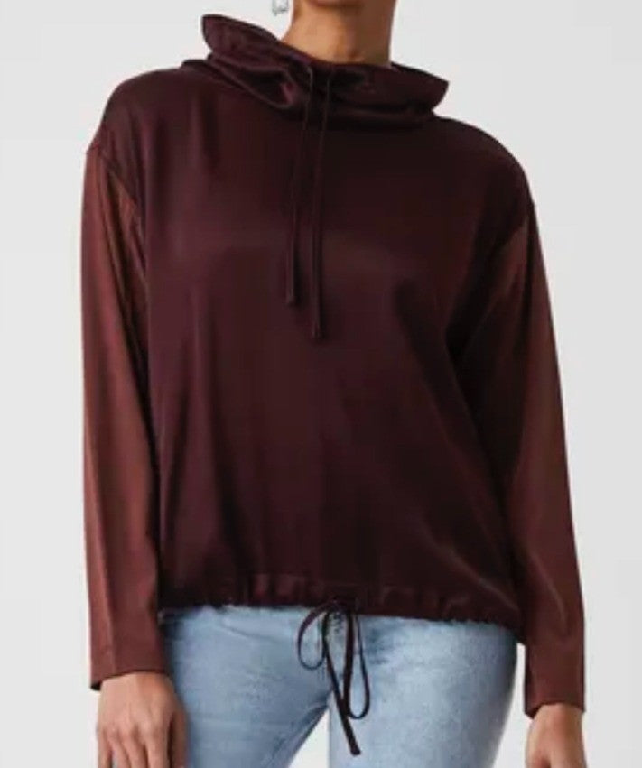 French Connection Womens Renya Drawstring Cupro Mixed Sweatshirt Blouses Top in Brown Size M NWT