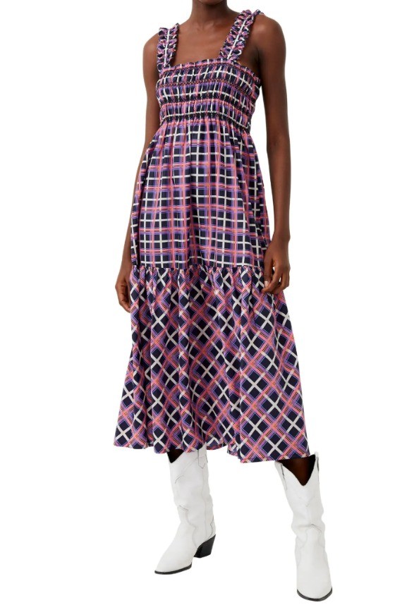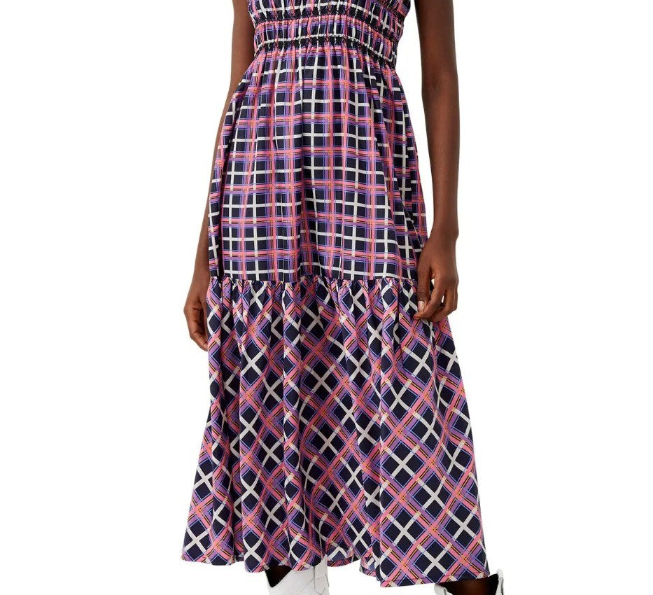 French Connection Women's Aggie Check Printed Tafita Smock Dress Multicoloured