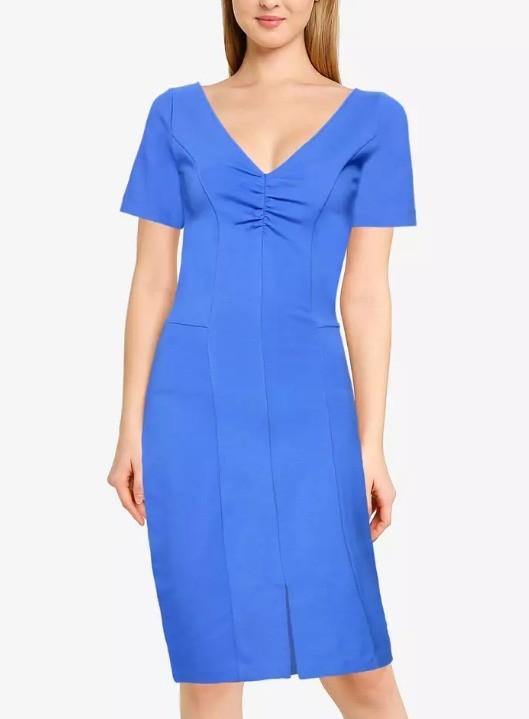Champion the art of simplicity slipped in our Suzan Ponte Dress. The bold bodycon silhouette features a figure-hugging fit, ruched detailing and V-neckline.