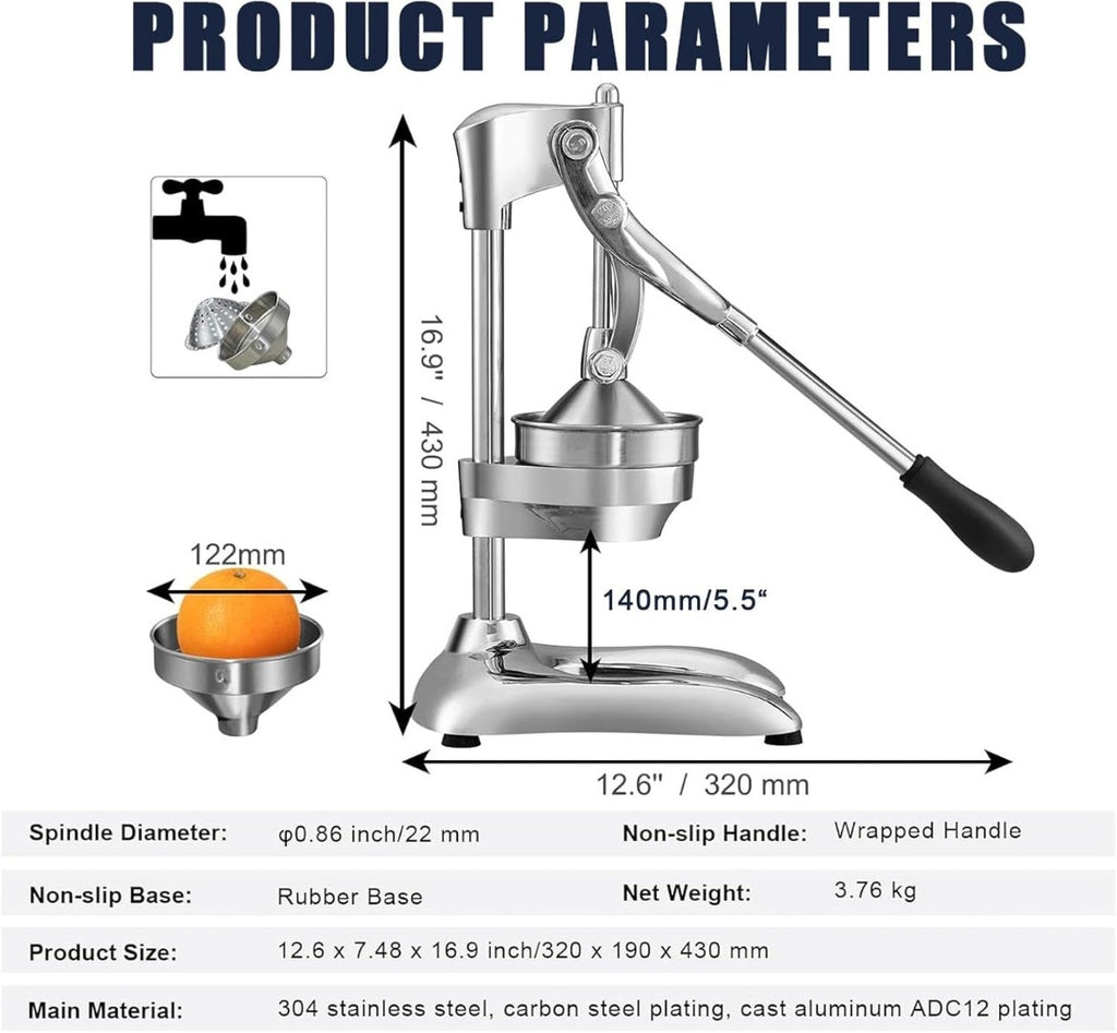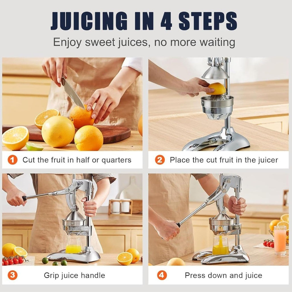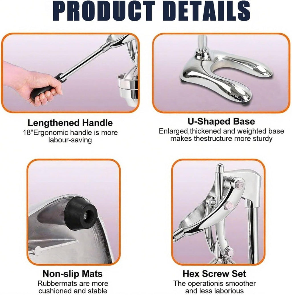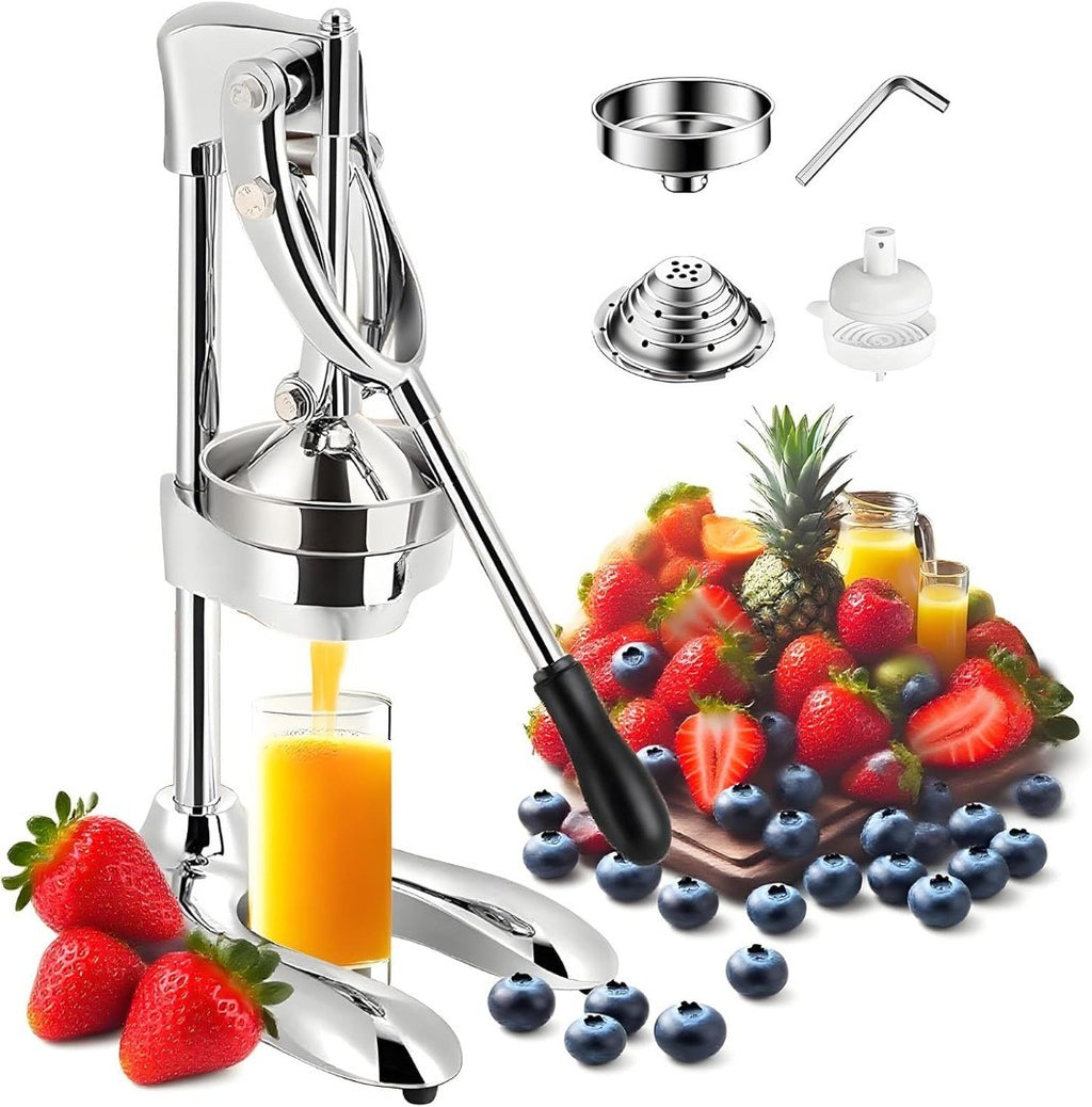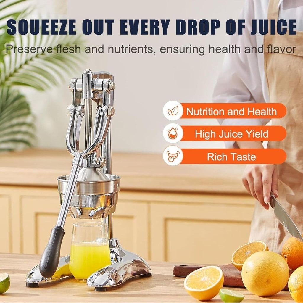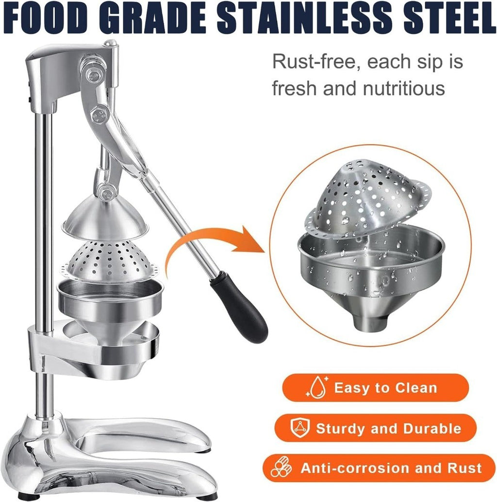Hand Press Juicer Machine, Stainless Steel Orange Juice Squeezer, Commercial Manual Citrus Juicer with Two Head, Fruit Press Juicer for Lemon Pomegranate