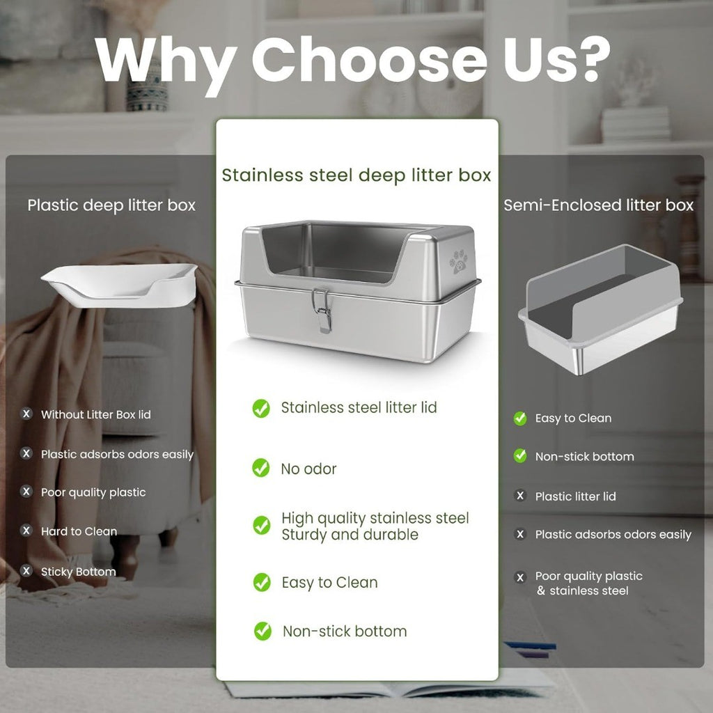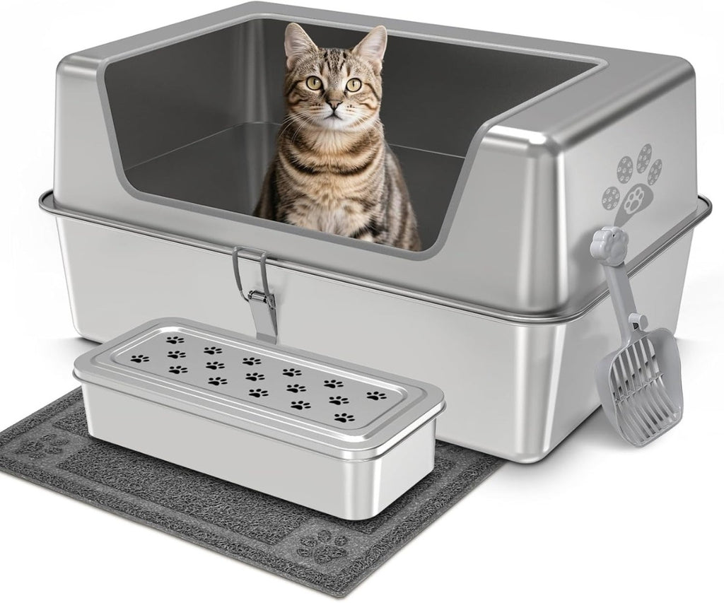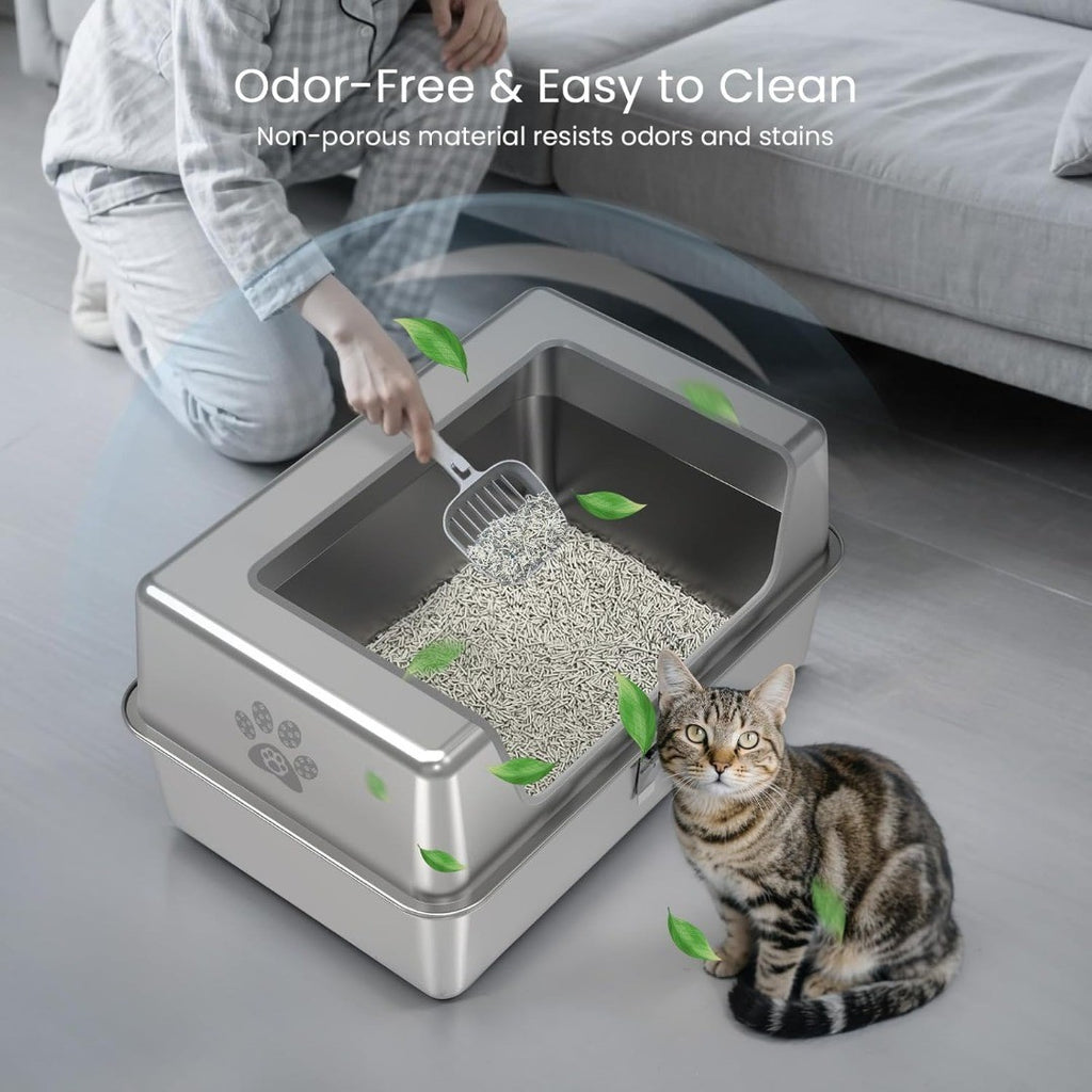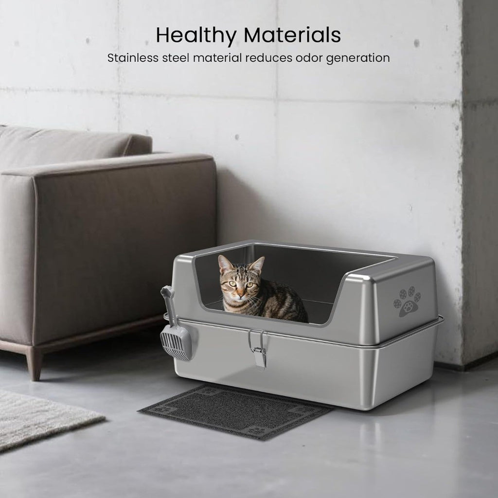 High-Sided Cat Litter Tray with Side Opening Stainless Steel