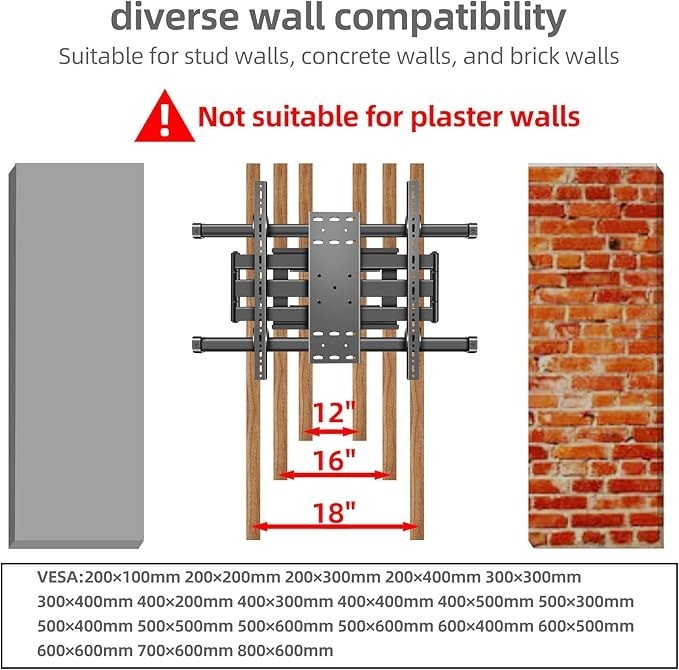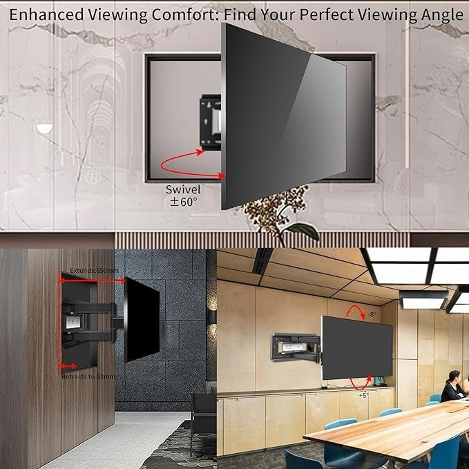 HILLPORT 85 86 90 98 Ultra Slim 53mm Heavy Duty TV Wall Mount for 55-100 Inch TVs, Swivel/Tilt/Extension Bracket Adjustable for Flat & Curved Screens up to 75kg, VESA 800x600mm Compatible DY995