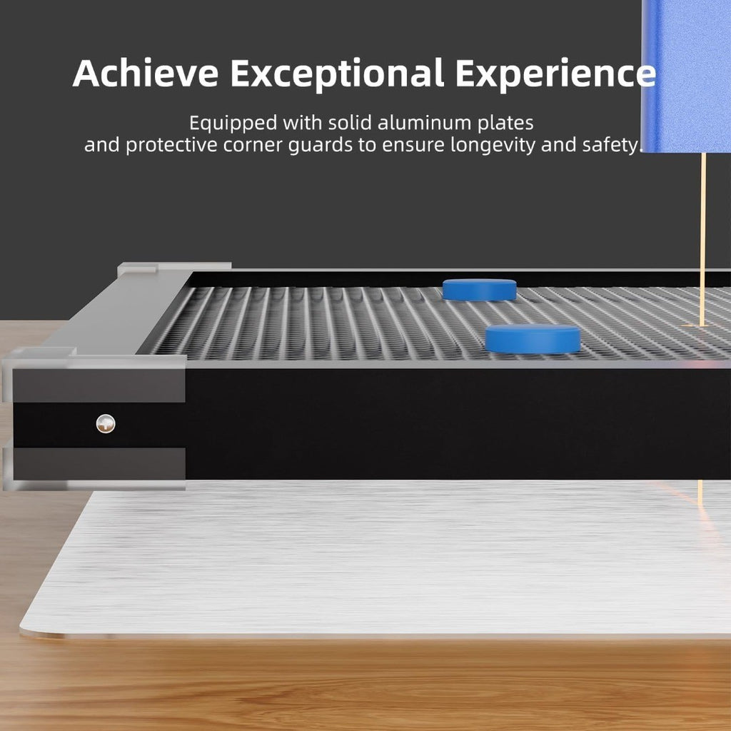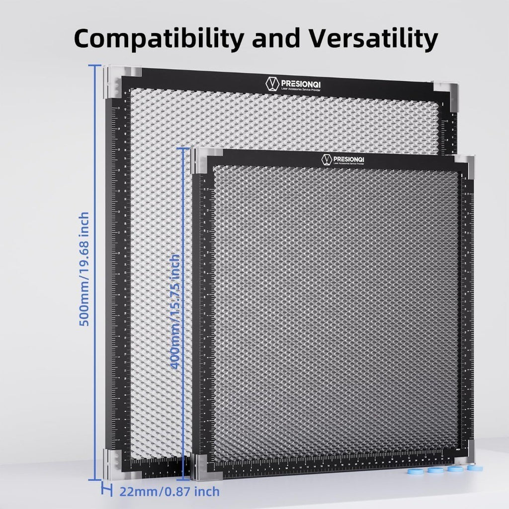 Protection for the desk: This honeycomb work table measures 500 x 500 x 22 mm. The honeycomb plate features precise scales along the edges that allow the wood and metal laser engraving machines to easily measure objects.