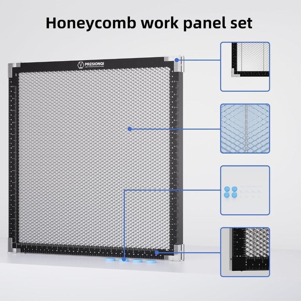 Necessary accessories for laser cutting: PRESIONQI honeycomb grid has a unique hollow and open structure that optimises airflow, reduces smoke and ensures efficient heat dissipation. This results in cleaner and more precise cuts and minimizes burn marks on your artwork.