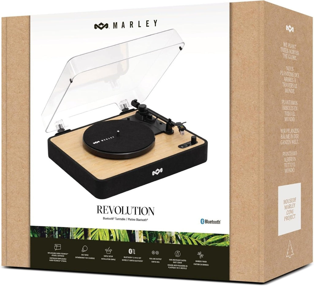 House of Marley Revolution Wireless Turntable - Bluetooth Record Player, 3-Speed Sustainably Made Vinyl Player, Easy Set Up Home Turntables for Vinyl Records with Dust Cover, Audio-Technica Cartridge