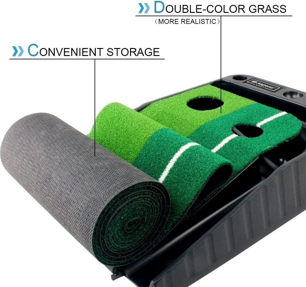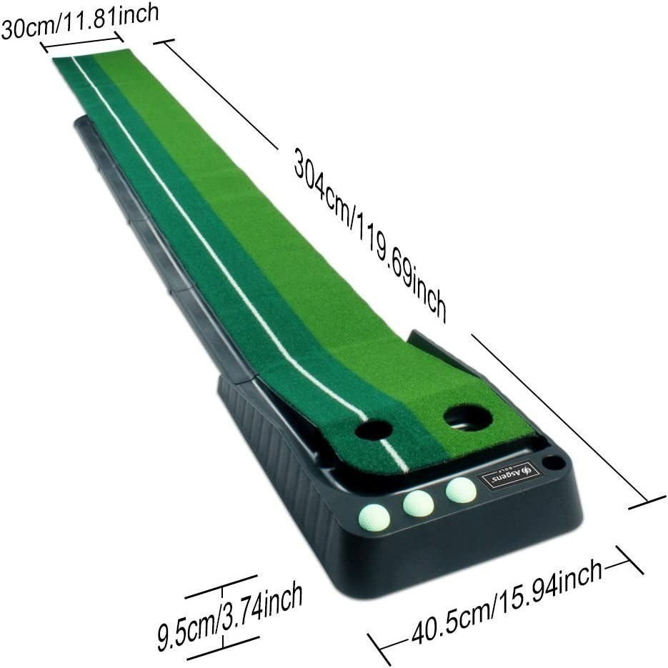 Asgens Golf Putting Trainer (3 Balls Free), Double-Colour Grass Golf Mat with Ball Thicken Return Track and Automatic Function. Practice Indoor & Outdoor for Beginner & Amateur.