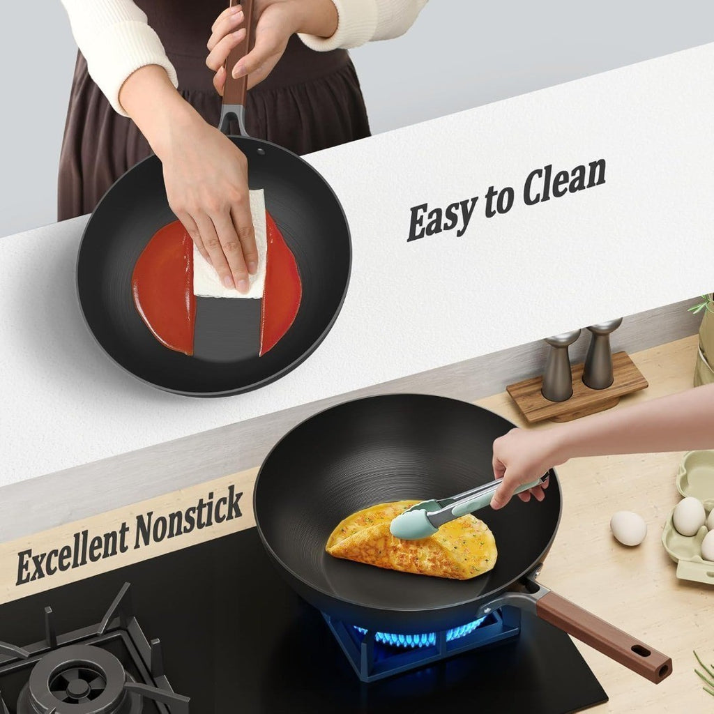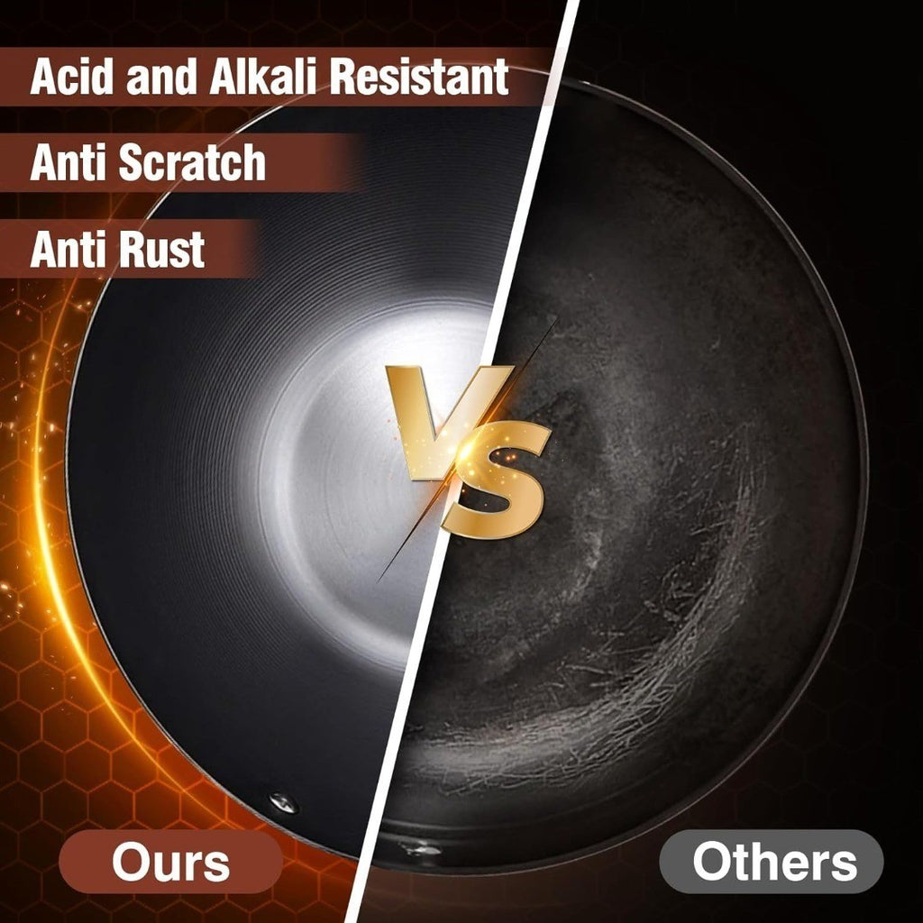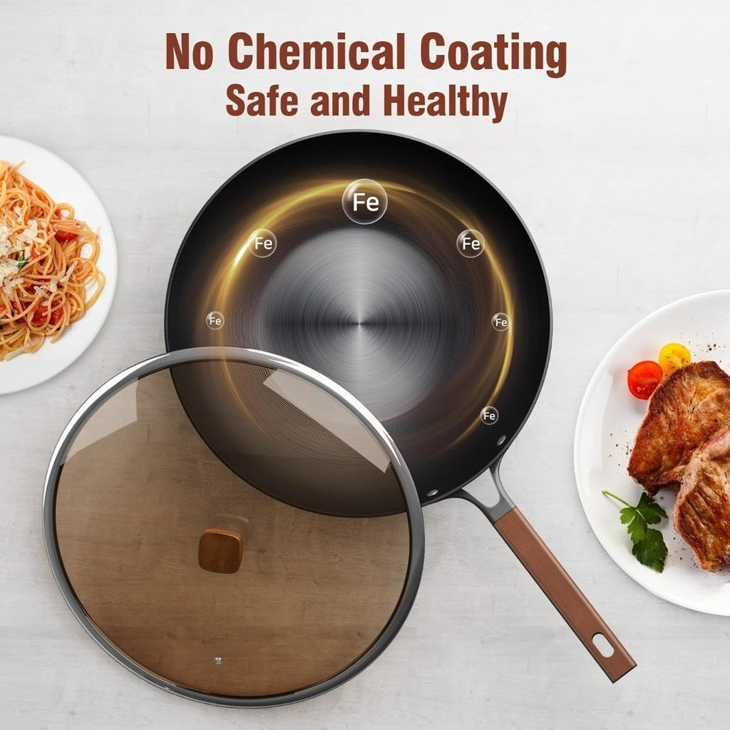 - Pre-seasoned carbon steel – natural non-stick surface