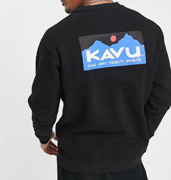 The Kavu Klear Above Logo sweatshirt in black is a regular-fit, crew-neck sweatshirt made from 100% cotton.