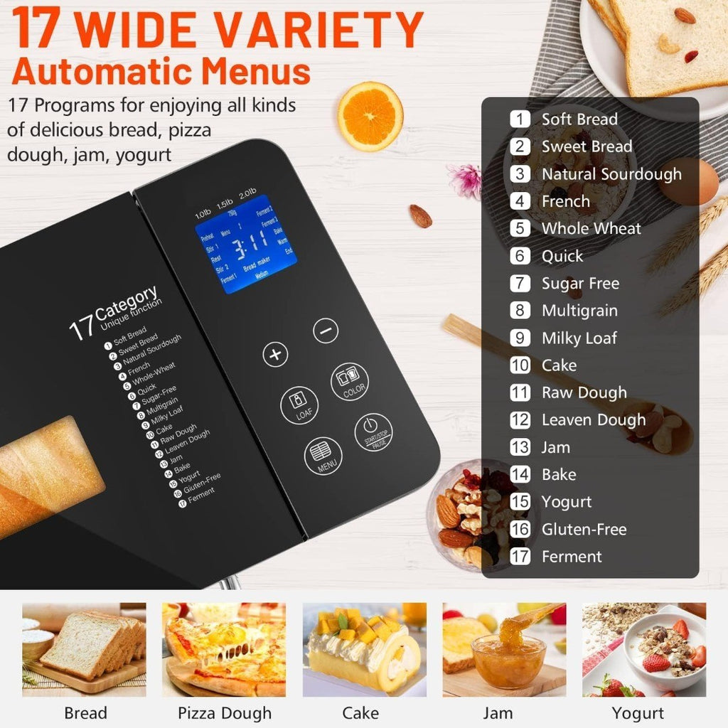 KEEPEEZ 17-in-1 Bread Maker with Ceramic Pan Black