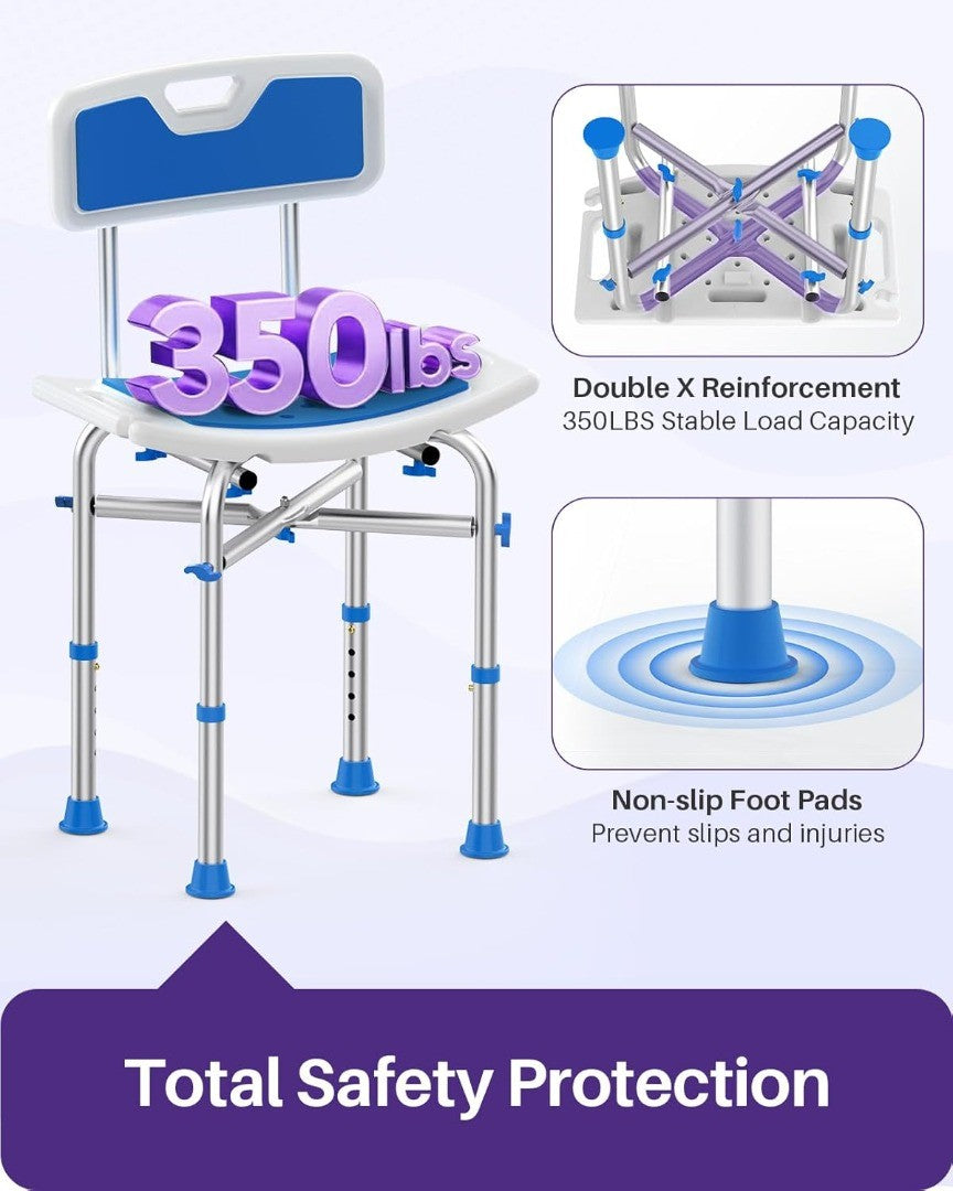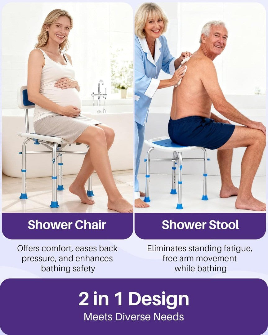 Kekoy 2-in-1 Shower Stool & Chair with Shower Head Holder - 5-Level Height Adjustable Shower Chair with Backrest, Bathroom Stool for Showers/Bathtubs, Shower Seats for Elderly, Adults & Disabled, Blue