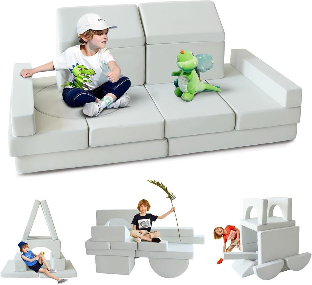 Lifestan Modular Kids Couch 14 PCS, Play Couches for Creative Kids, Foldable Foam Couch for Playroom, Convertible Explorer Play Sofa Set for Indoor Playing, Creating, Sleeping
