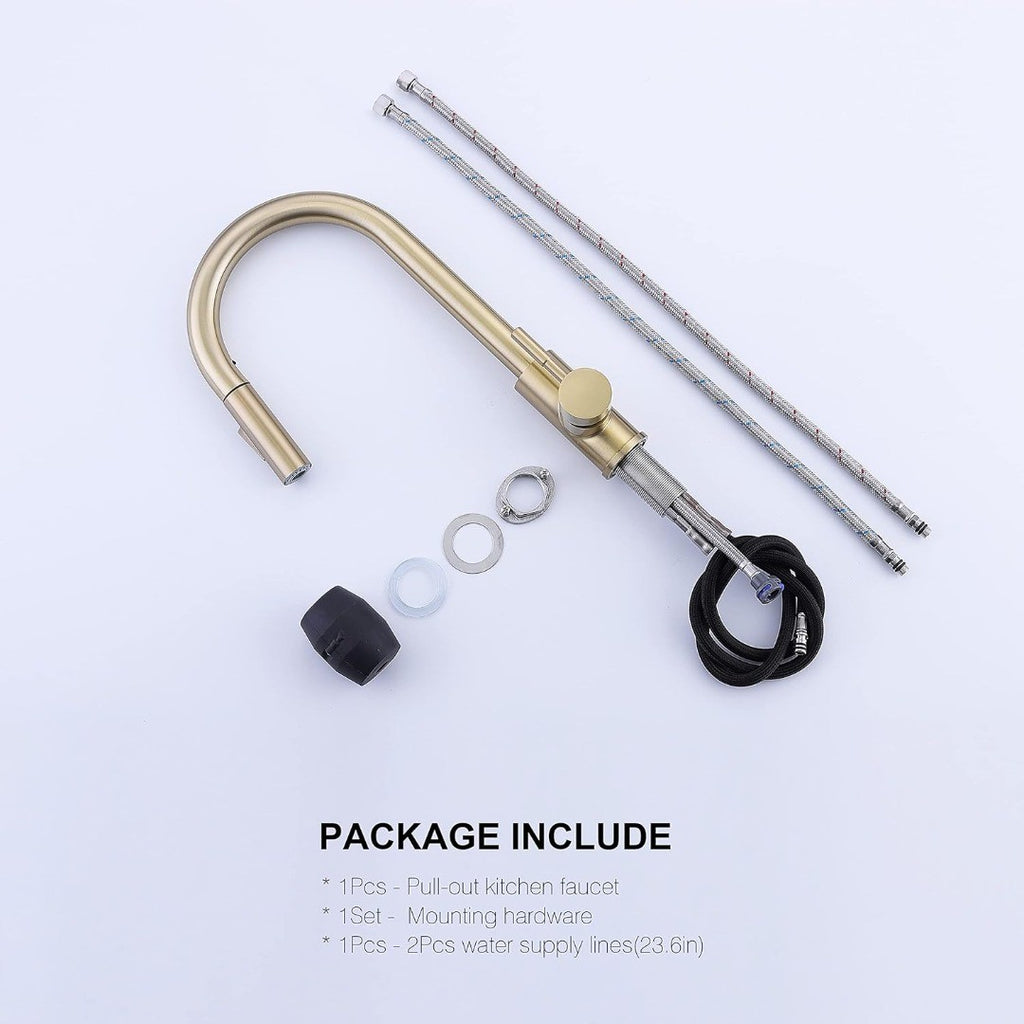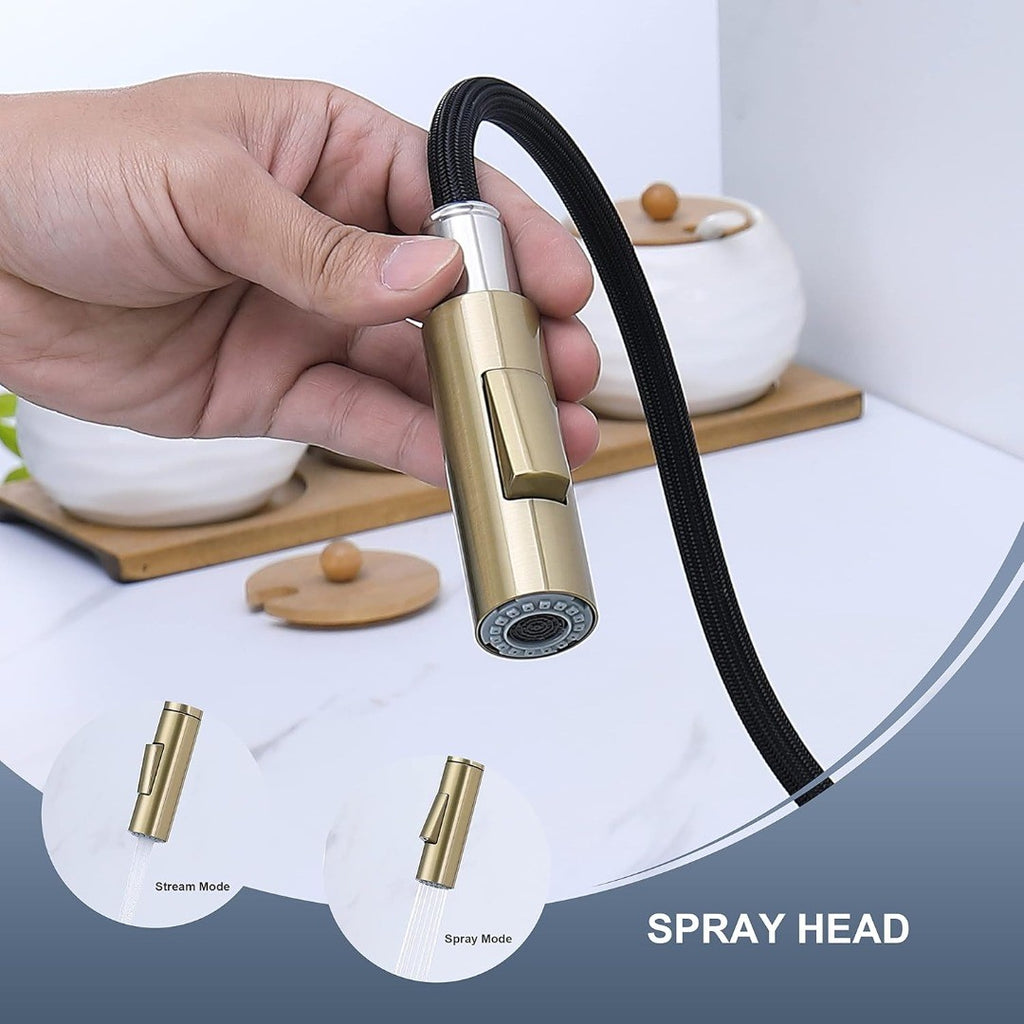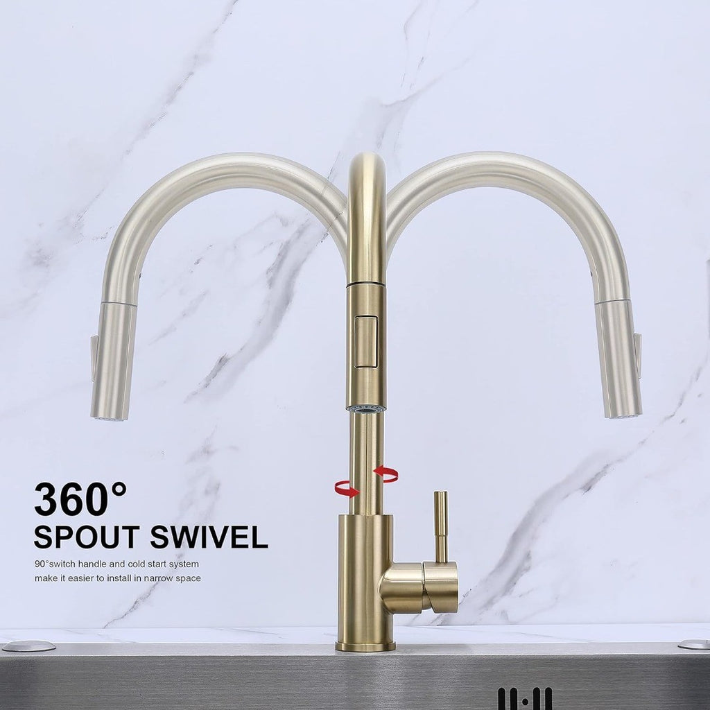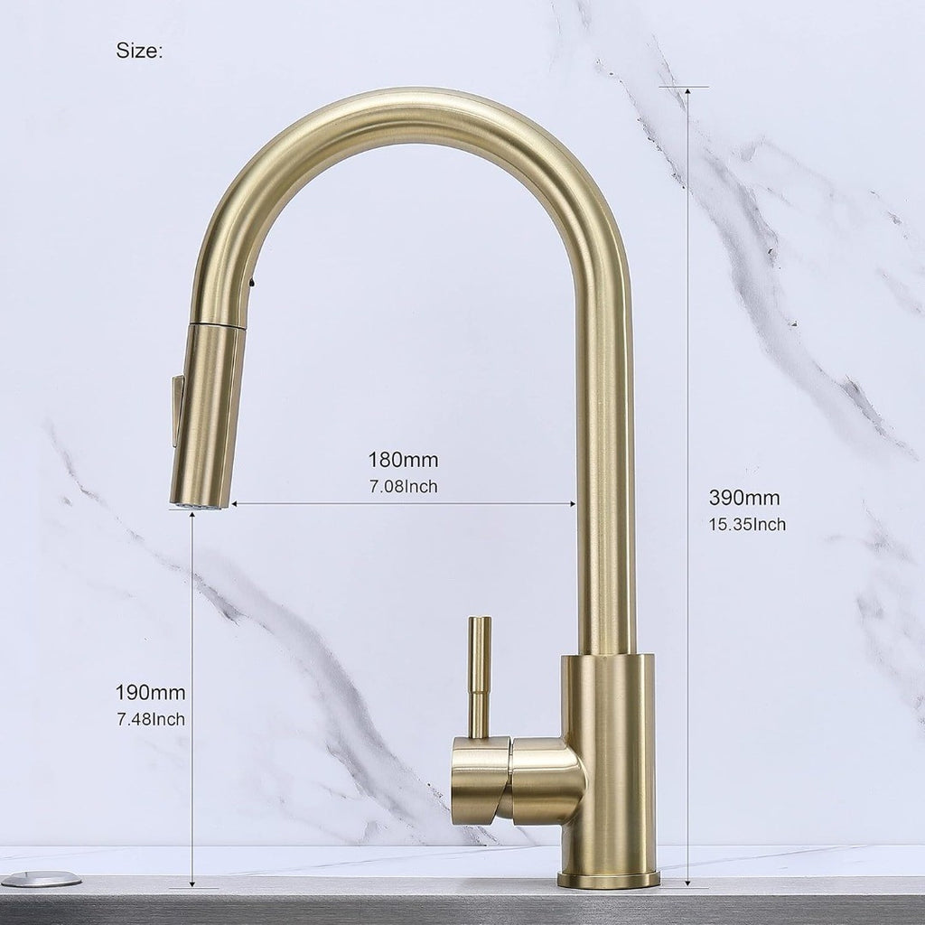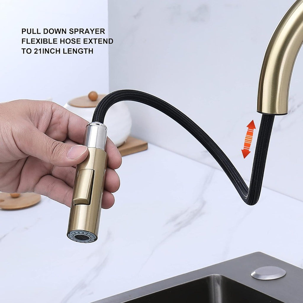 Assiniboine Brushed Gold Kitchen Sink Tap with Pull-Down Sprayer, Monobloc Gold Single Handle Kitchen Mexer Tap with Sprayer