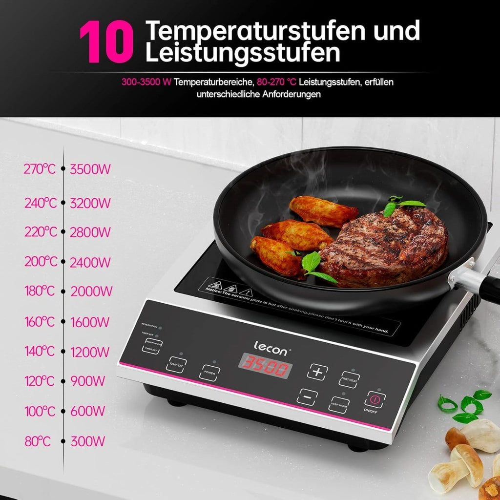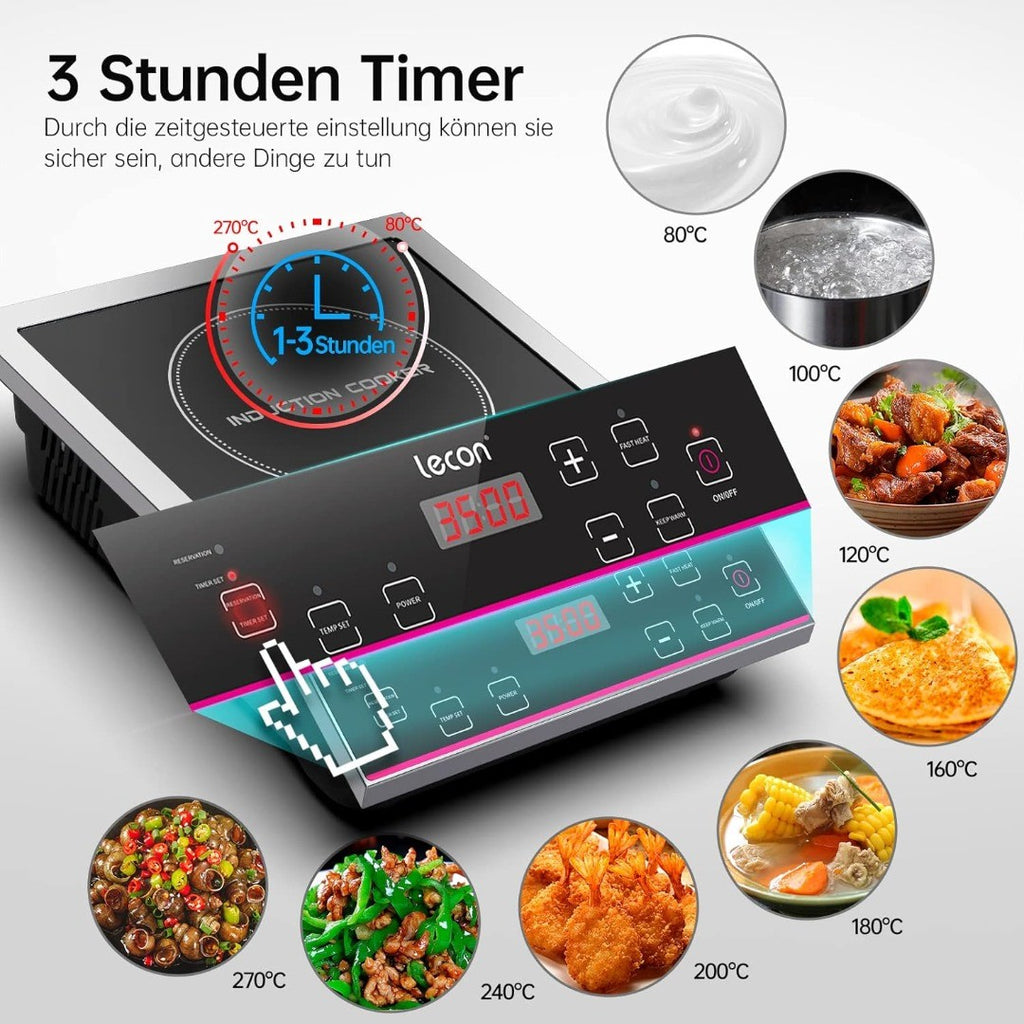 Lecon Induction Hob, 3500 W, with On/Off Timer and Insulation Function, Large Load Capacity 50 kg, Stainless Steel Housing, Temperature Control, Hob