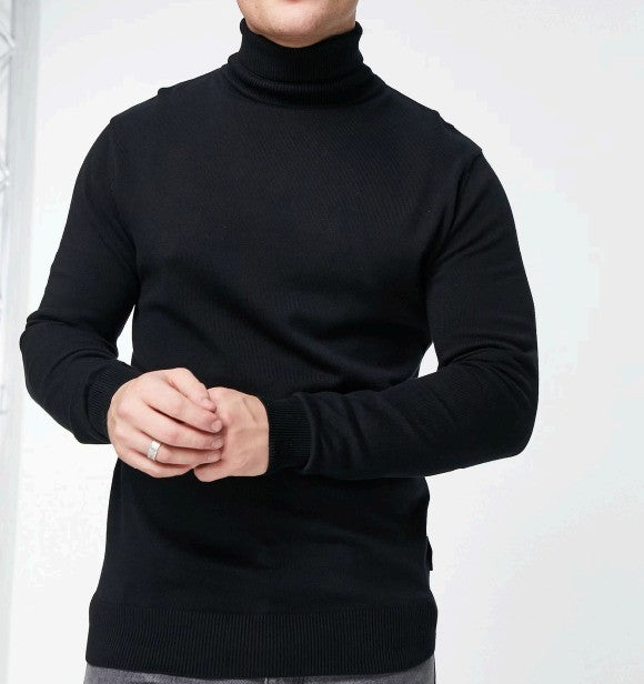 French Connection Men's Roll Neck Jumper in Black 58ROJ Size XL