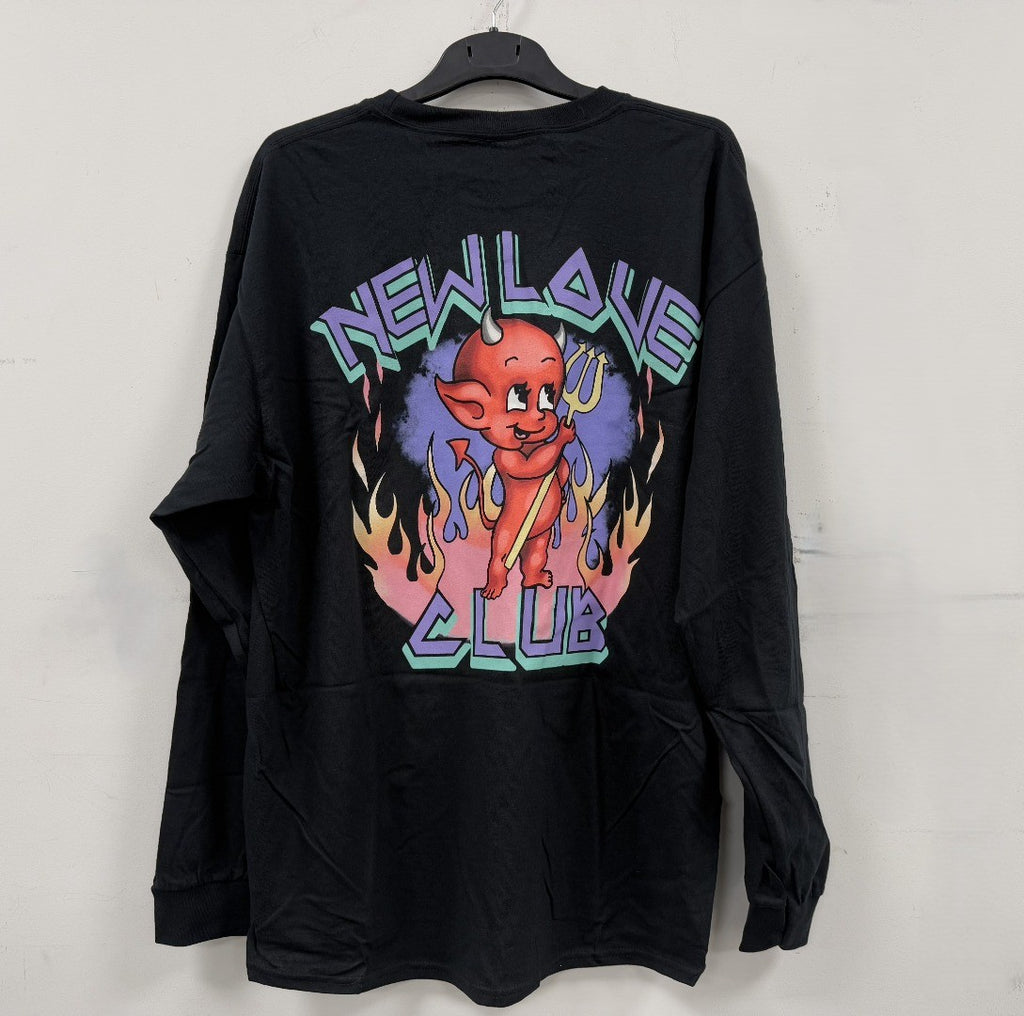 New Love Club Men's Devil Backprint Long Sleeve T-Shirt in Black Size L (110183922)