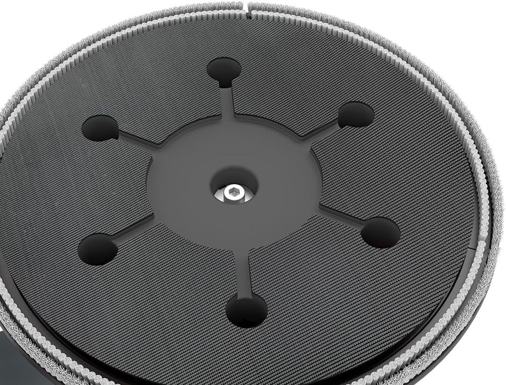 Virtually dust-free working: An innovative double-row brush ring encloses the protective bonnet in such a way that sanding dust is extracted much more effectively than with conventional drywall sanders.