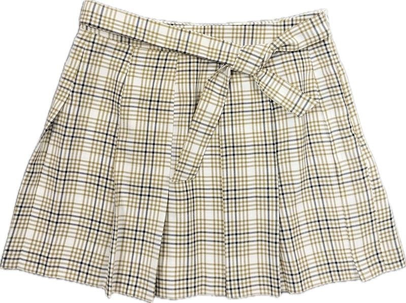 Miss Selfridge Womens Tie Front Pleated Kilt Mini Skirt in Brown Check Size UK10 NWT