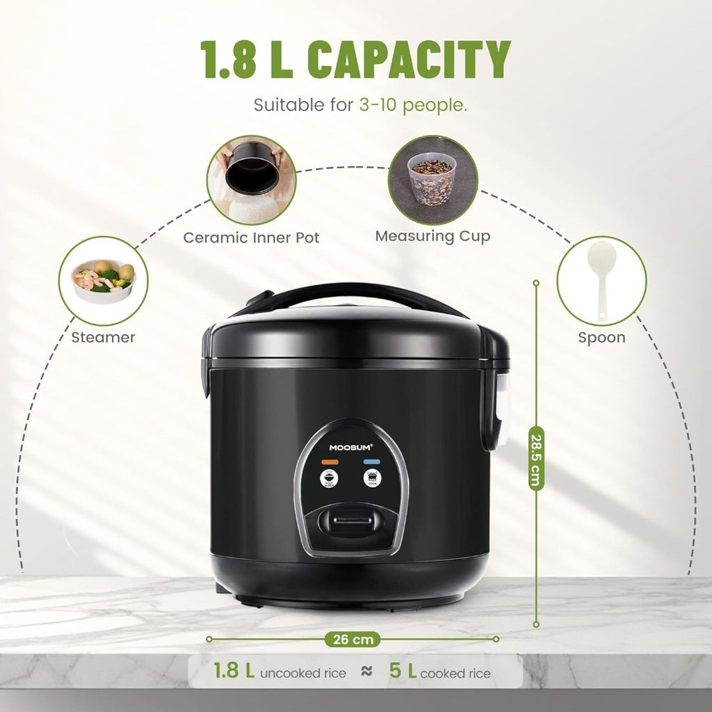 MOOSUM Electric Rice Cooker One Touch 1.8L Black