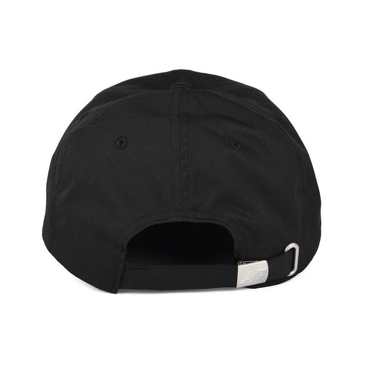 The New Balance NB Linear Logo Baseball Cap in black is made of a soft lightweight material and features the New Balance linear logo embroidered on the unstructured front. The back of the cap has a metal clasp and an adjustable strap so it fits most sizes comfortably.