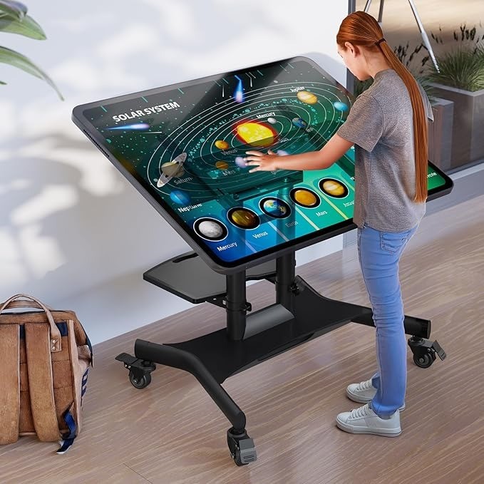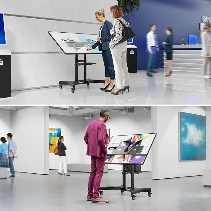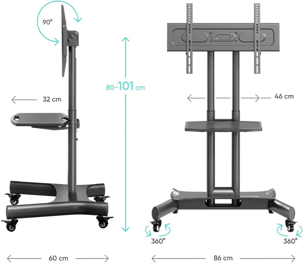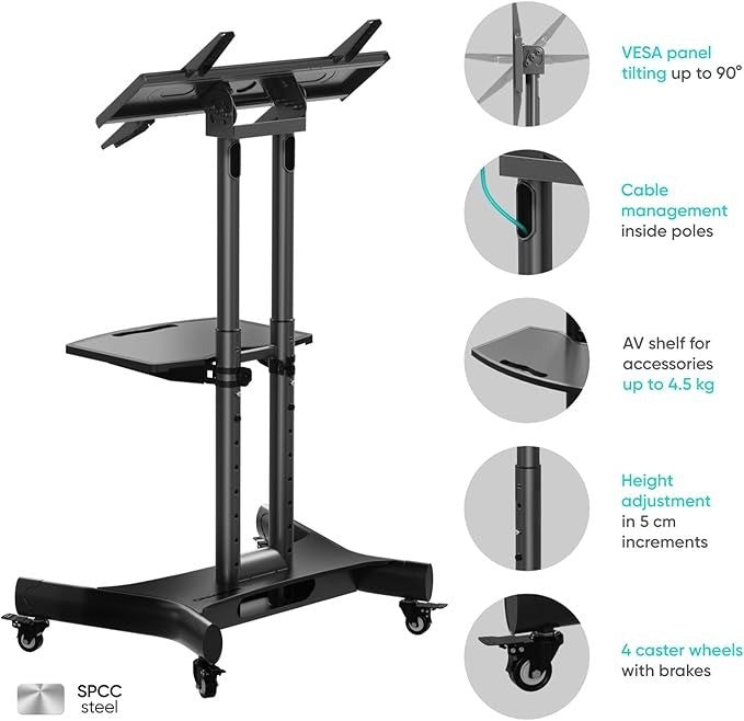 ONKRON Mobile TV Stand on Wheels for 32" - 70" TVs & Interactive Panels, Rolling TV Stand up to 45 kg - TV Trolley on Wheels VESA 100x100-600x400/Height Adjustable TV Floor Stand Tilt TS1350-B Black