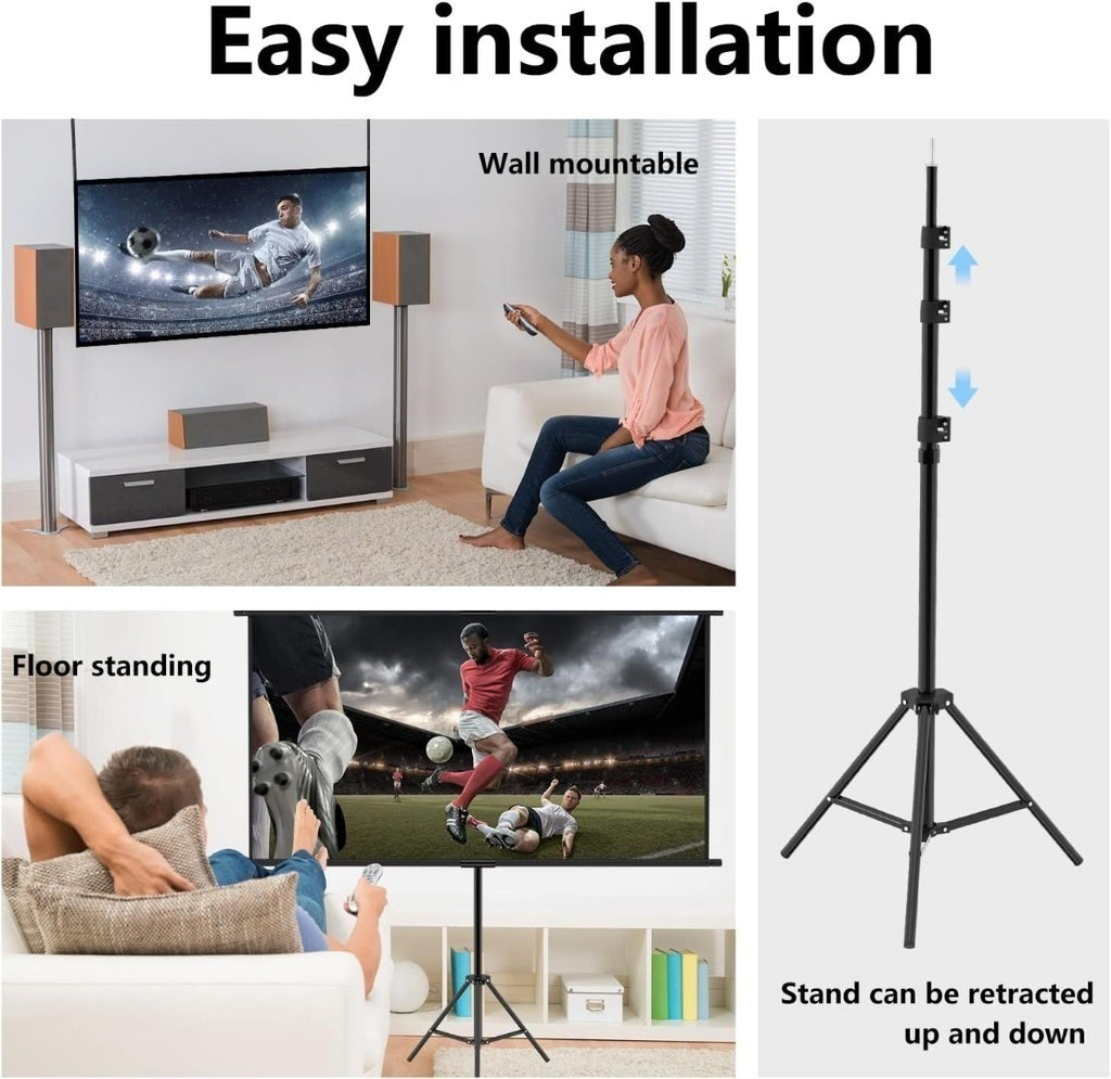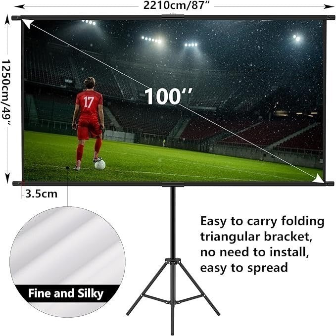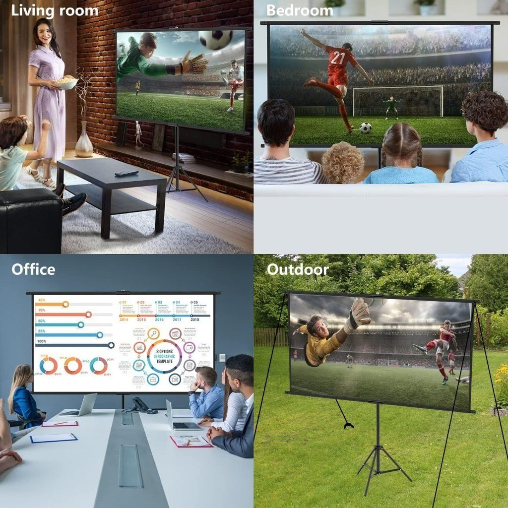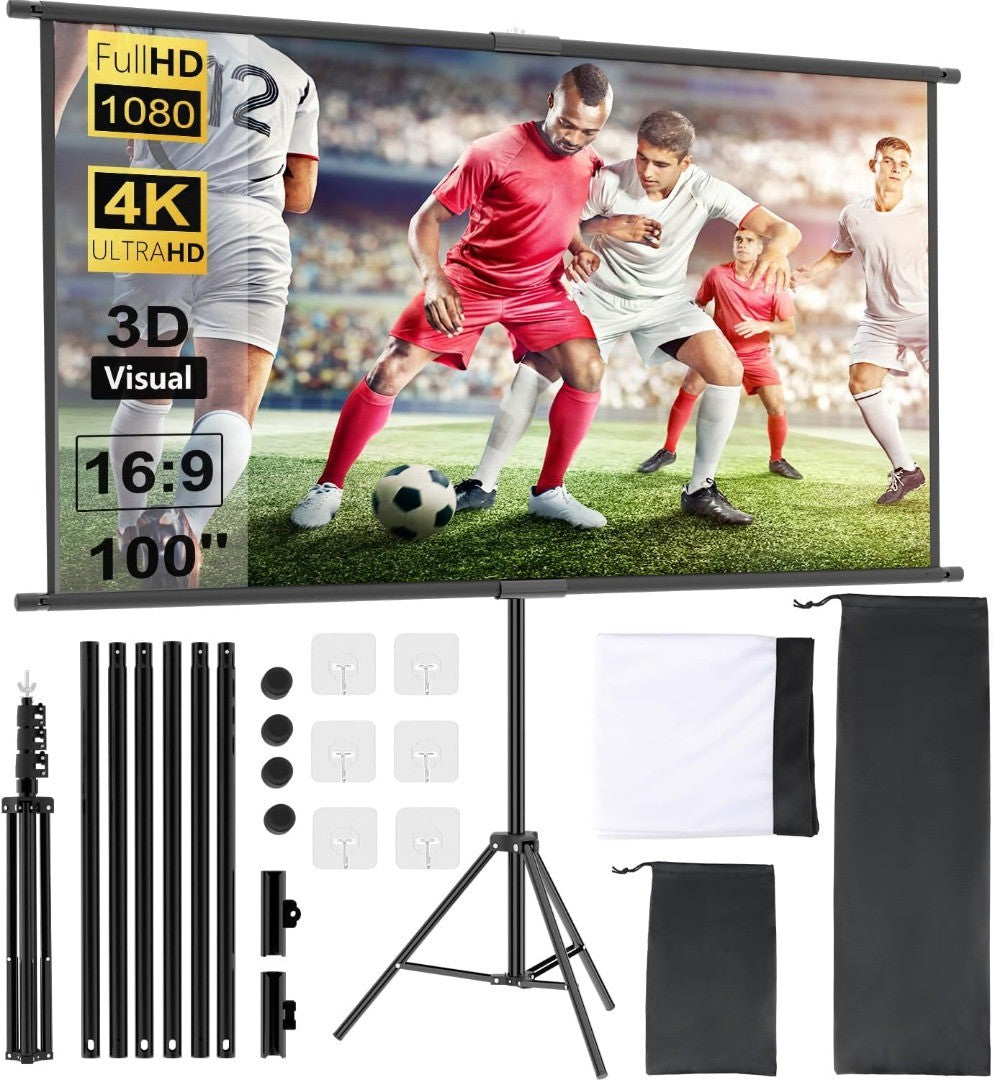 - Screen Projector: 100 inch 16:9 HD 4K ultra wide screen with detailed colours for an excellent viewing experience in different positions.