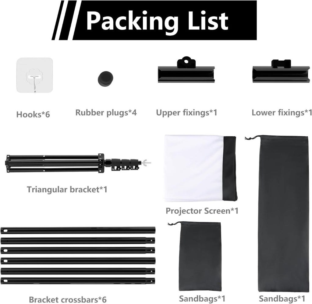 - Advanced Materials: You don't have to worry about creases or wrinkles caused by folding the screen. Fine workmanship, clear projection, improved effect and contrast, easy to clean properties.