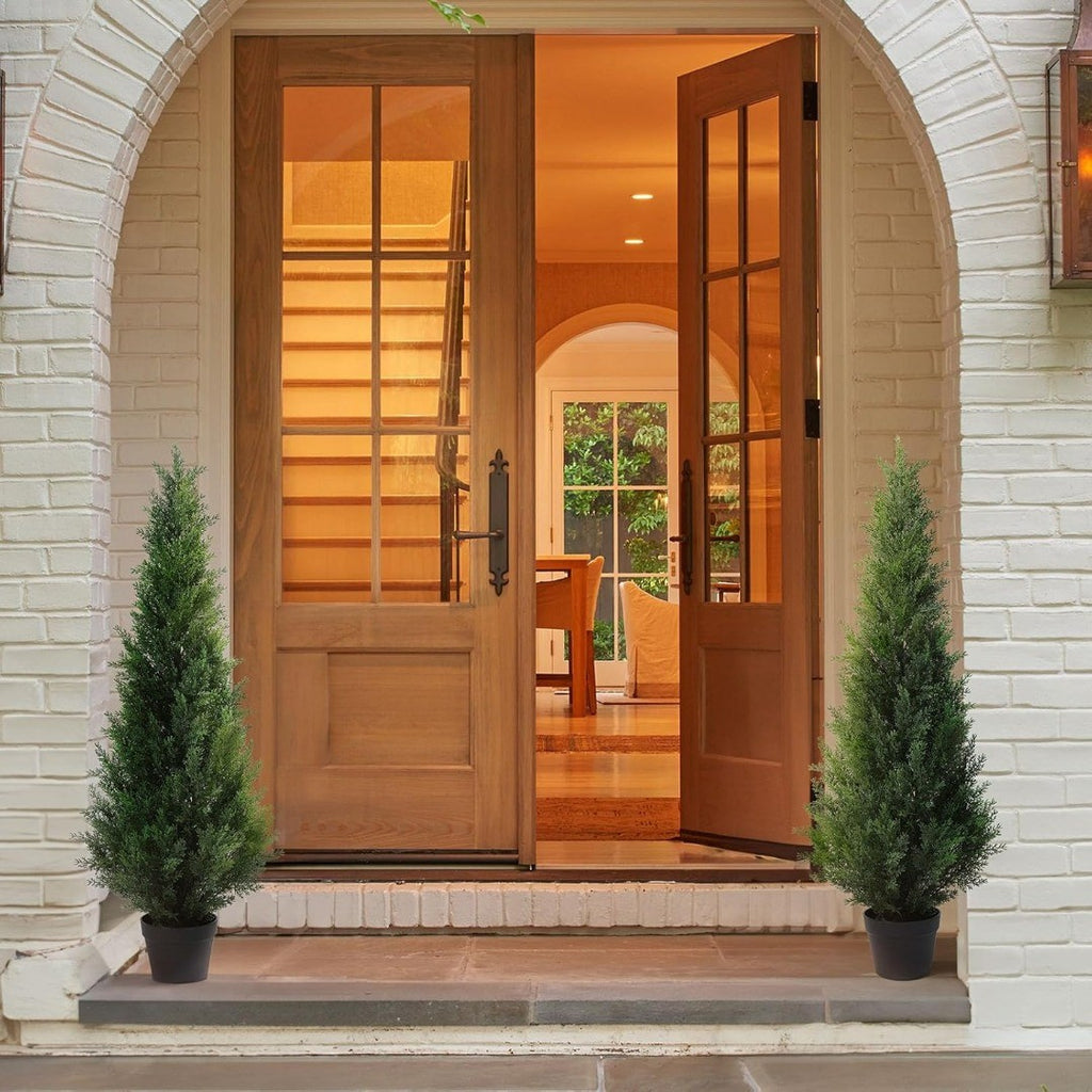 CROSOFMI Artificial Plants Outdoor 125 cm Fake Cedar Tree Large Faux Plants With Plastics Pots for Garden Front Porch Decoration (2 Pack)
