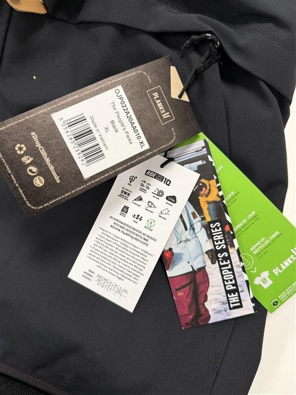Planks Unisex The People's Parka Ski Snowboard Jacket RIDEdry10 Black Size XL NWT