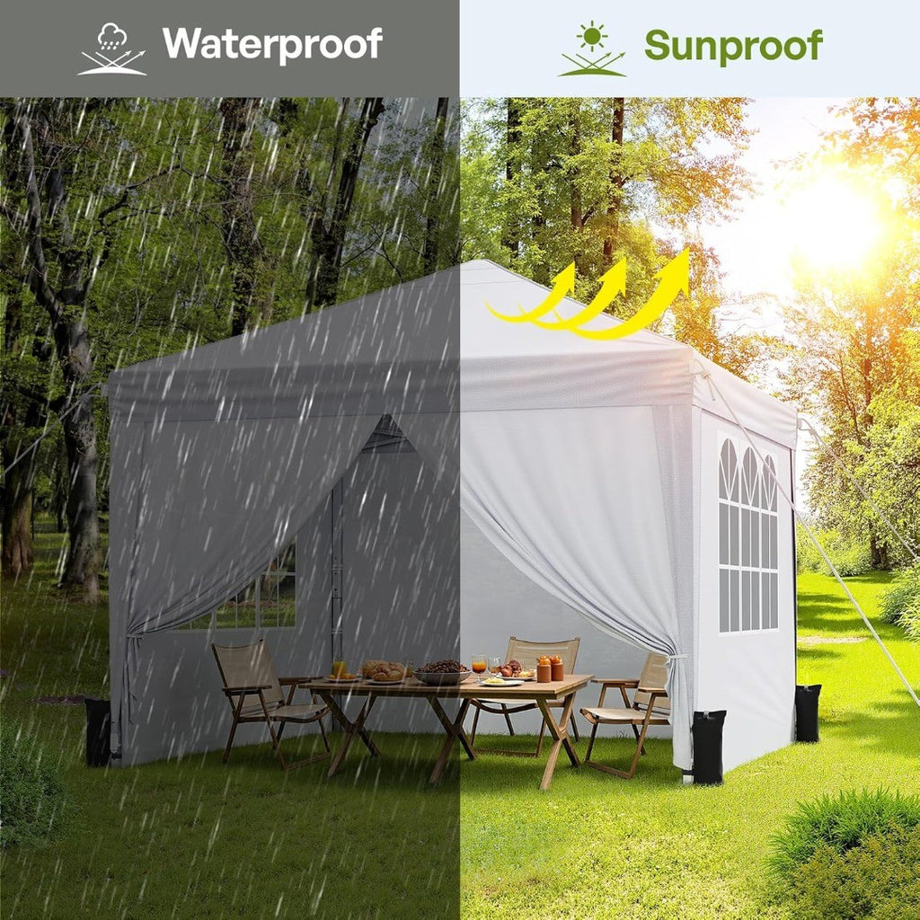 Pop-Up Gazebo with Side Walls & Windows 3m White