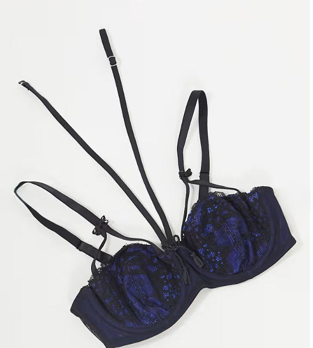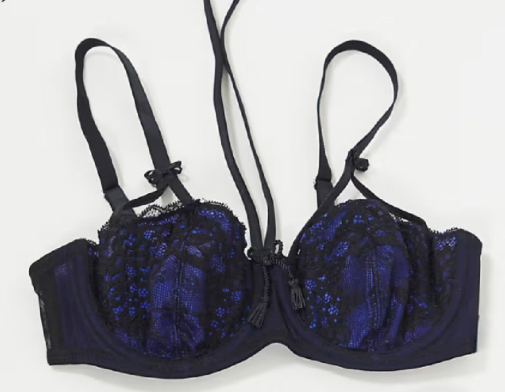 Pour Moi Womens Hush Underwired Bra in Blue/Black Size UK38DD NWT