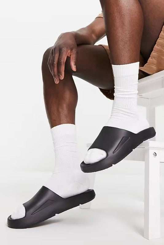 The Pull&Bear chunky sliders in black are a minimalist, slip-on style footwear option.