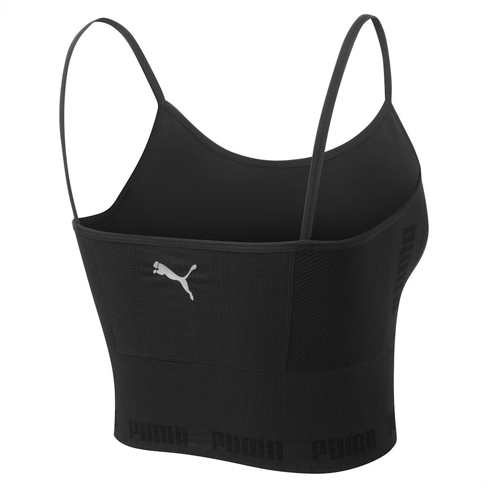 Fitted cropped sports top in breathable stretch fabric with skinny shoulder straps. Reflective logo on back.