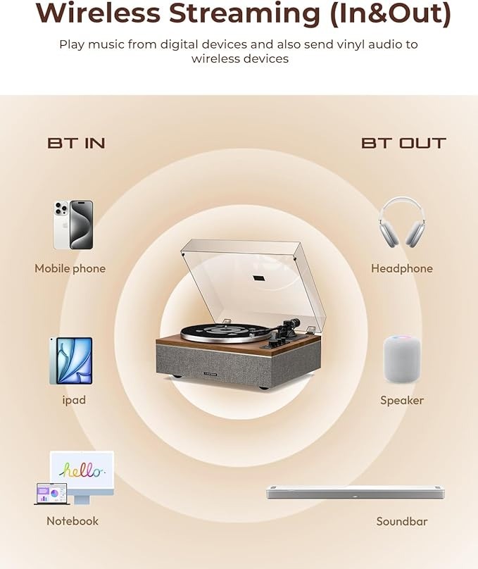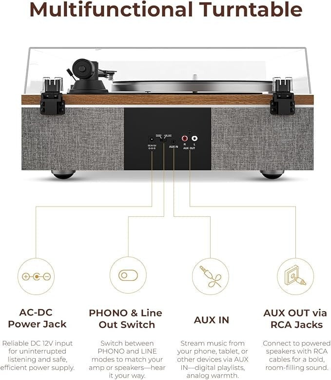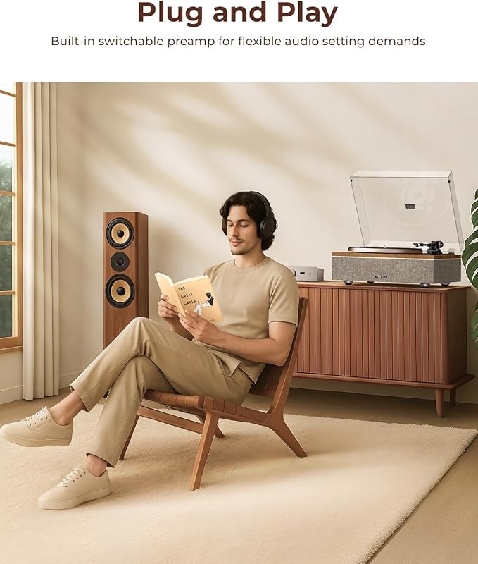 QLEARSOUL ONE-S Record Player Built-In Speakers Bluetooth Walnut