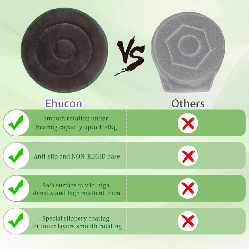 - Soft and comfortable material: This rotating cushion is crafted from a soft, comfortable, and flexible material that can bend to conform to various surfaces, including the contours of car seats. Its exterior features a soft velvet fabric, while the interior is filled with high-elasticity foam, ensuring shape reshaping and support even after prolonged sitting. Additionally, the base material of the seat cushion possesses anti-slip properties, enhancing safety during turns.