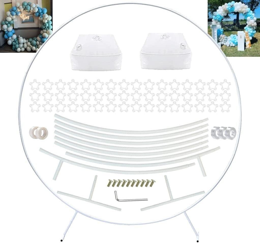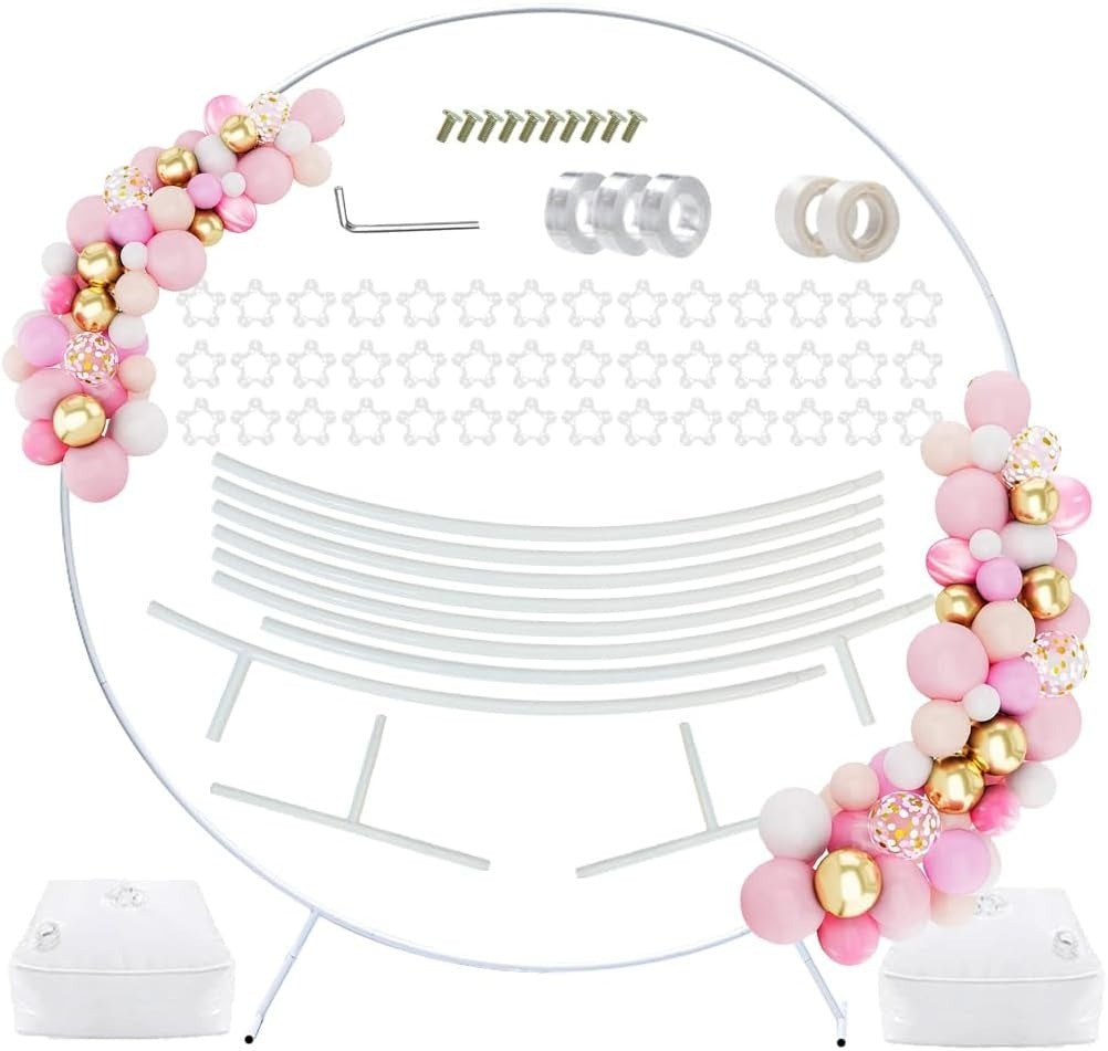 PILIN Round Balloon Arch Kit, Metal Balloon Circle Frame, Big Size Backdrop Stand for Birthday, Wedding, Baby Shower, Grad Party Decoration (WHITE 2.2M)