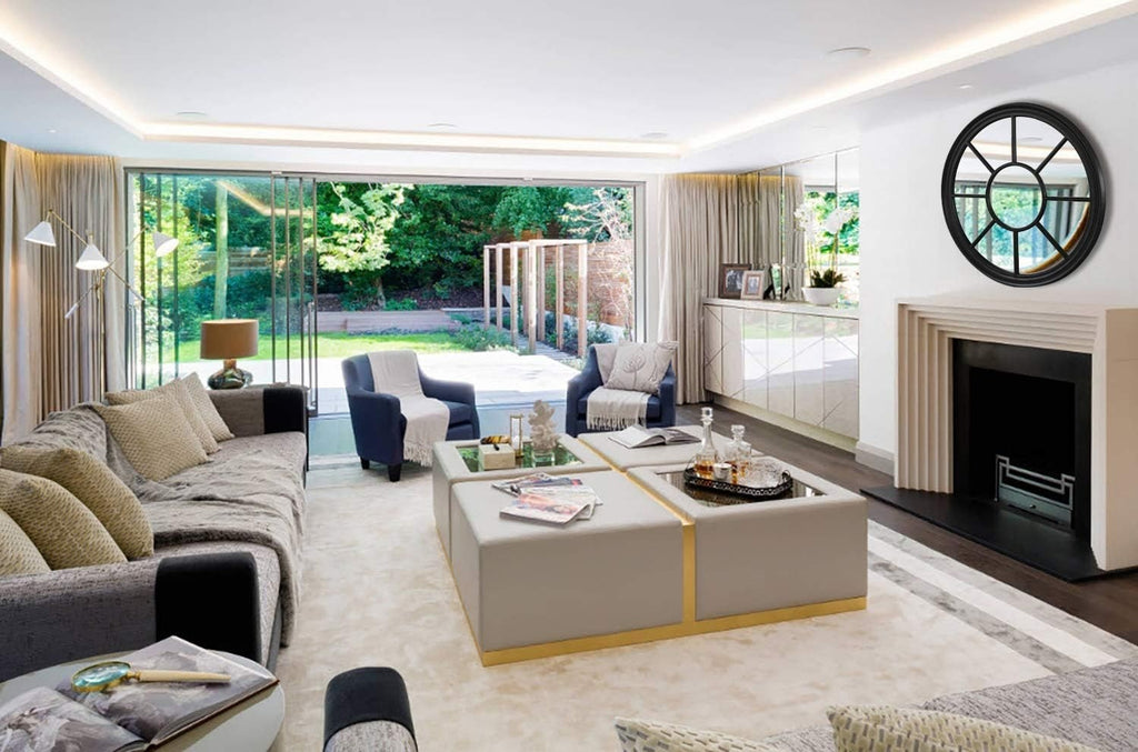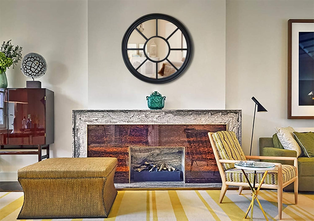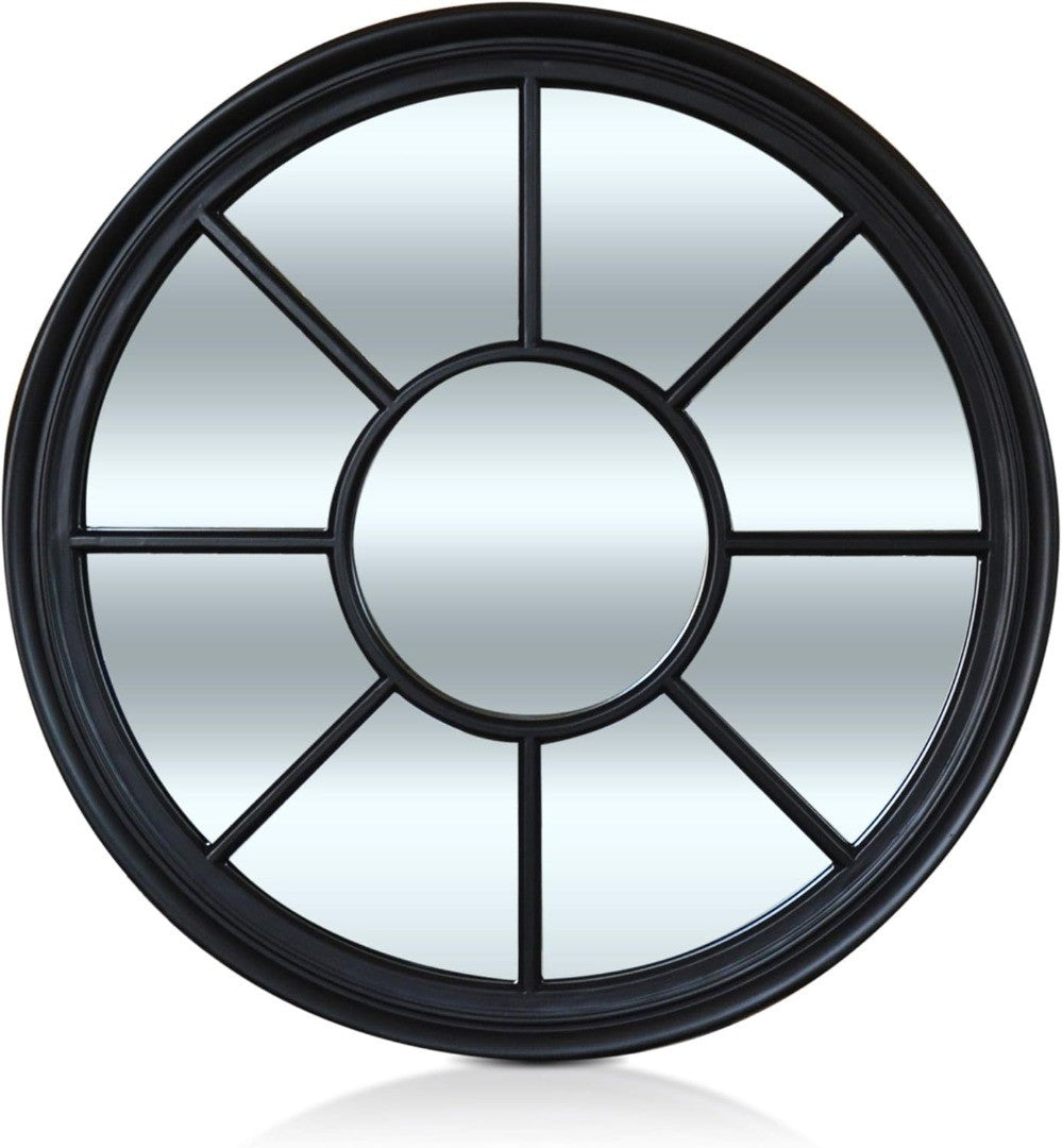 Round French Window Mirror 90cm Matt Black