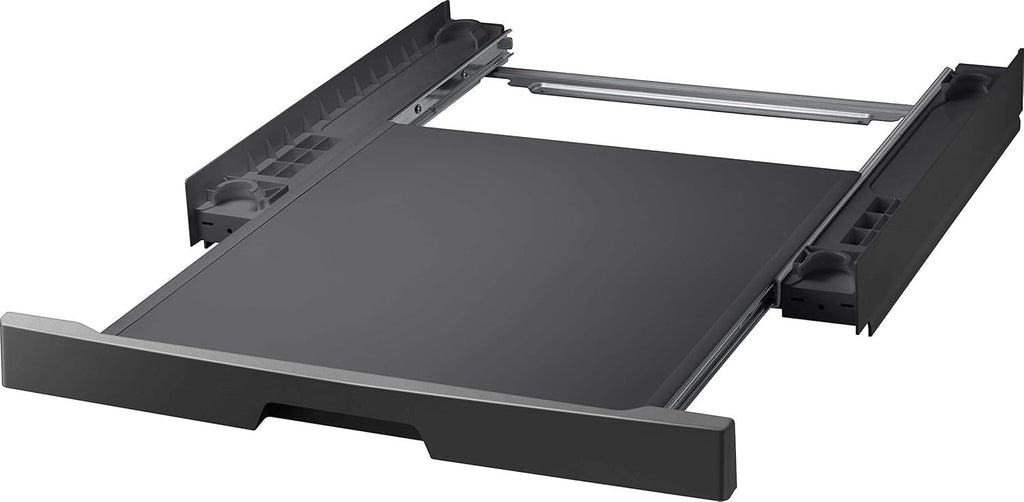 Designed to securely connect a compatible Samsung washing machine and dryer for a stable stacked setup. Includes an extendible pull‑out shelf for convenient loading, unloading, and folding, with a maximum load capacity of 15kg. A genuine Samsung accessory built for durability, safety, and ease of installation.