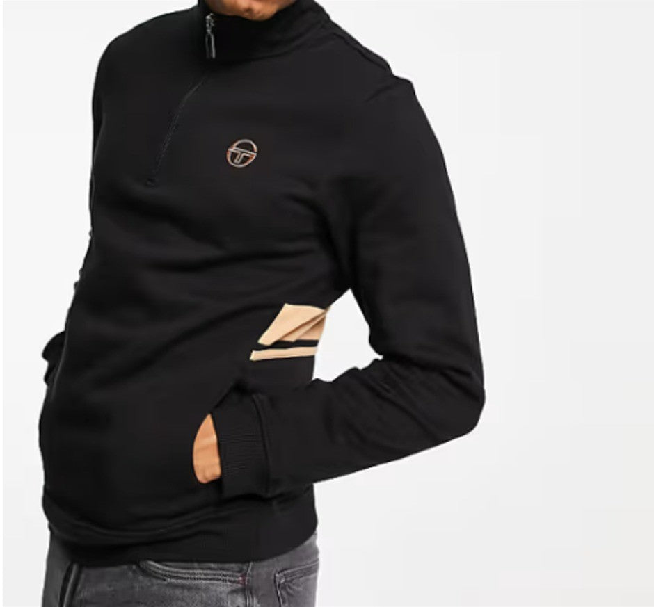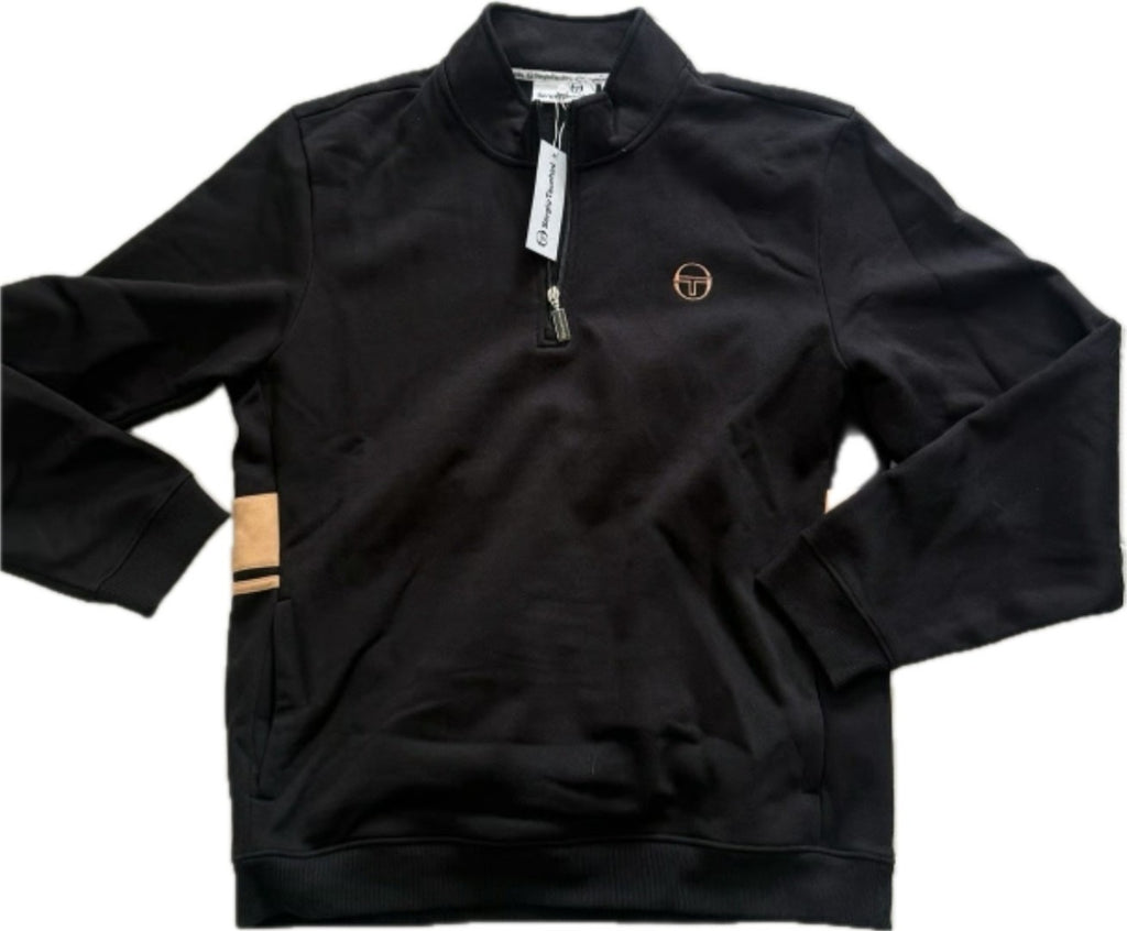 Sergio Tacchini Men's half zip 1/4 Thorton sweater with logo in black and tan NWT