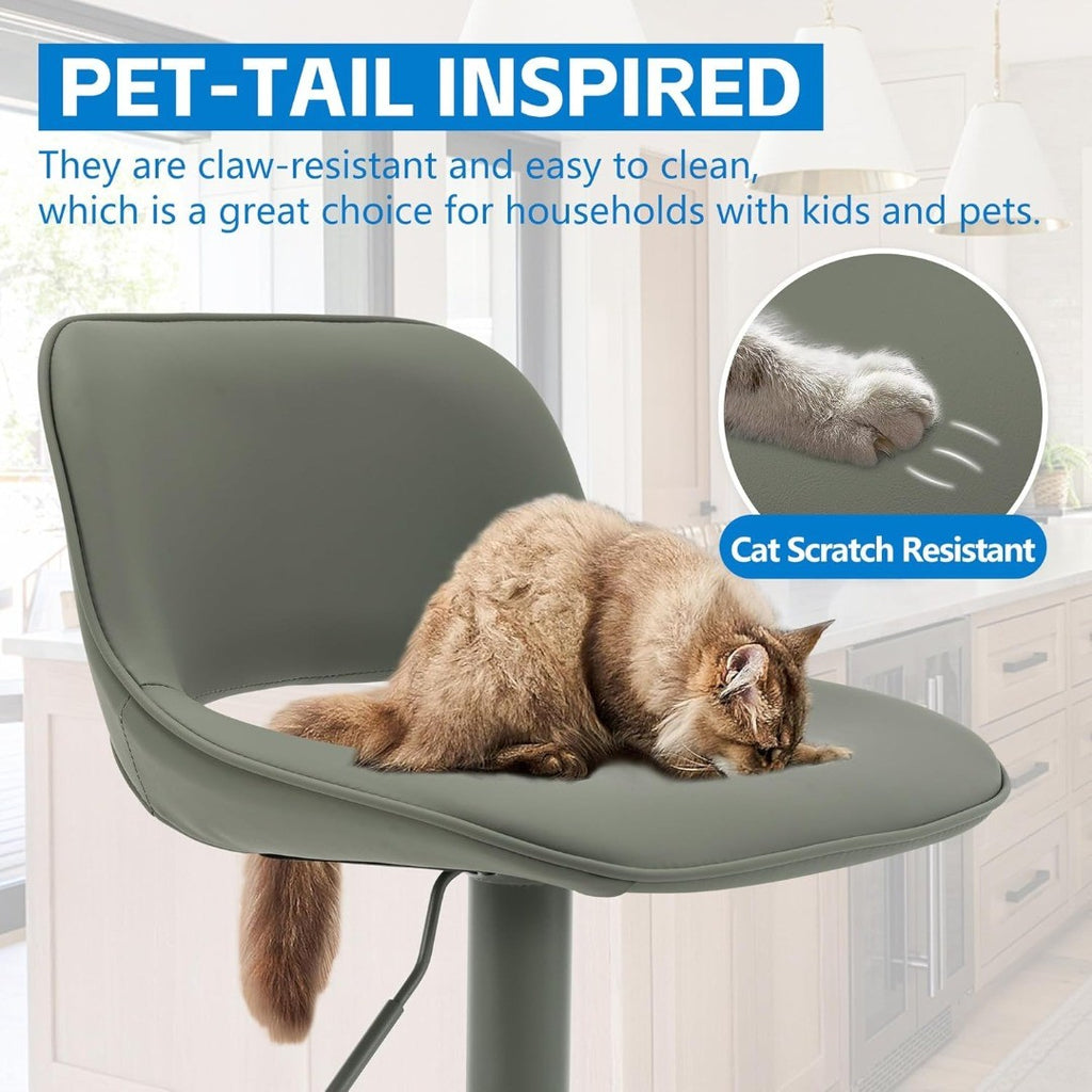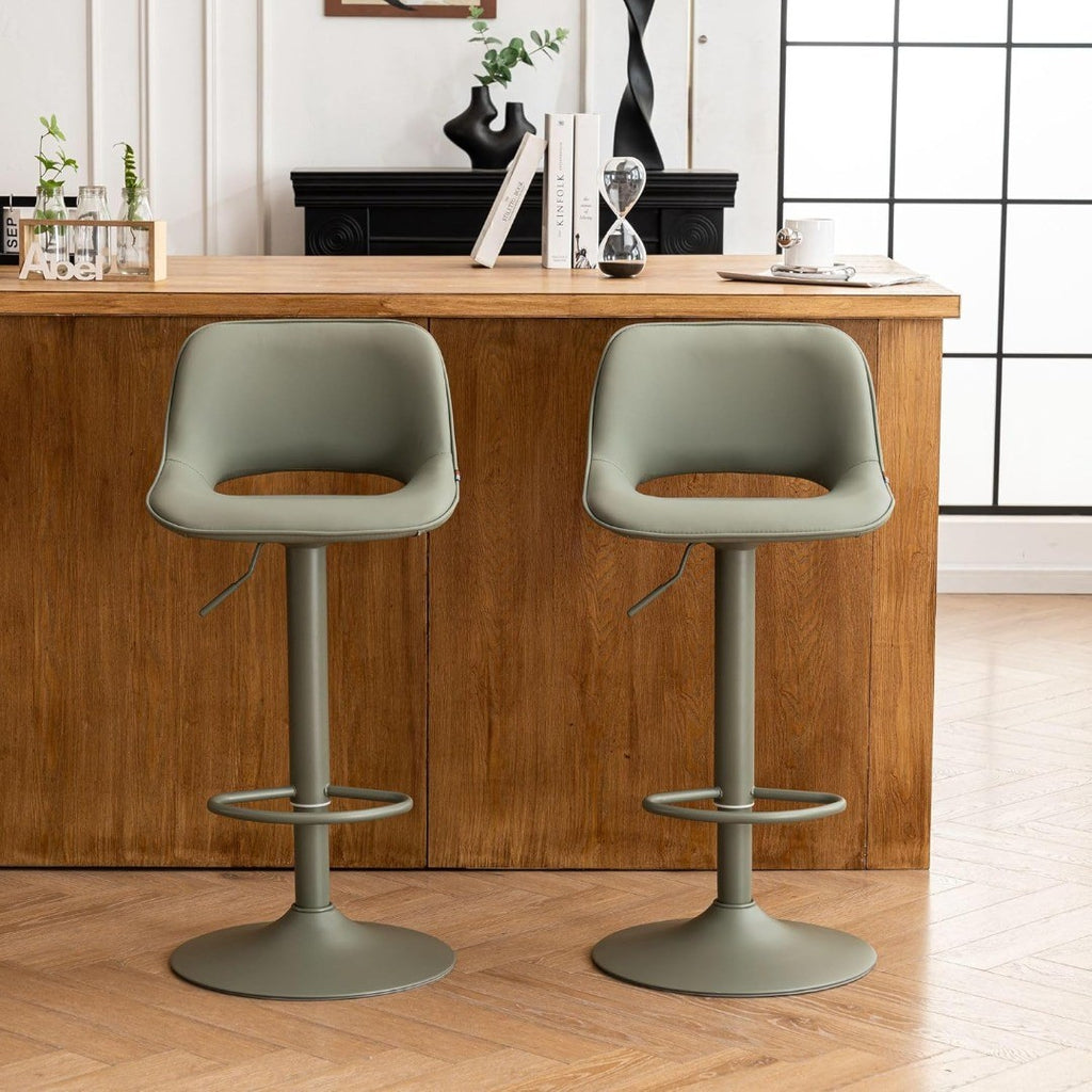 YOUNIKE Bar Stools Set of 2 Modern Swivel Barstools, Adjustable Counter Height Bar Stools Faux Leather Upholstered Counter Stools with Hollow Back for Kitchen Island, Olive Green
