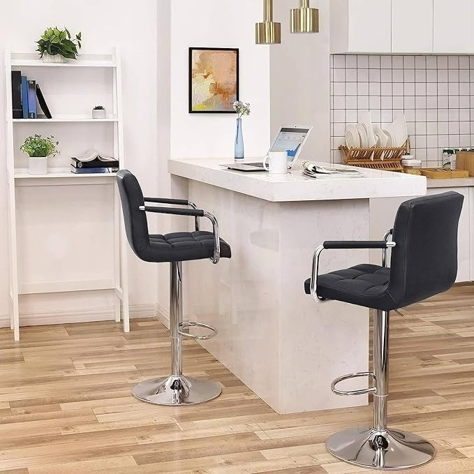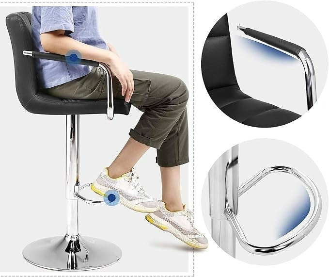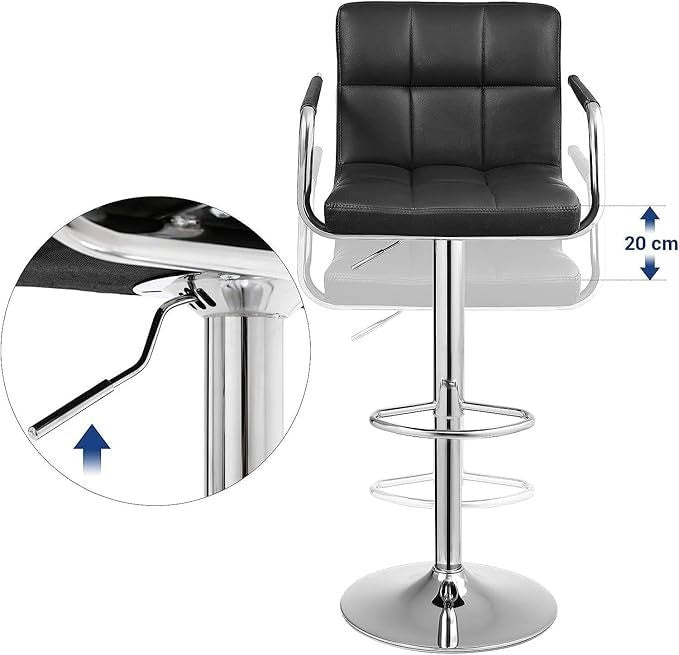 Set of 2 Swivel Bar Stools Faux Leather Black