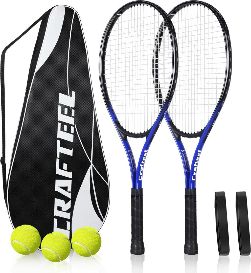 Complete Tennis Rackets Set of 2 for Beginners & Recreation: This all-in-one tennis rackets set of 2 includes everything you need to start playing right away: 2 tennis racquets, 3 tennis balls, 2 replacement overgrip tapes, and a spacious carry bag. Whether in the garden, park, or school court, enjoy a casual match anytime