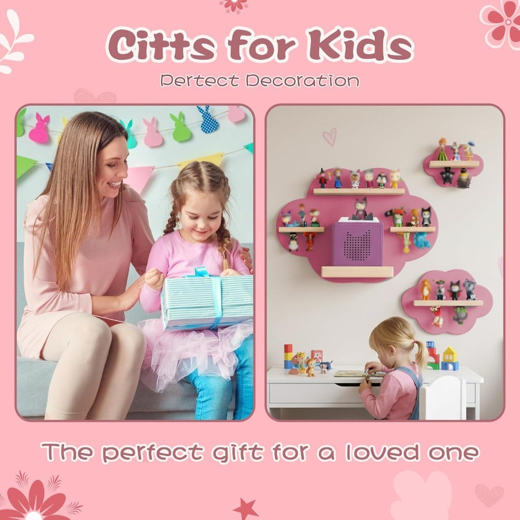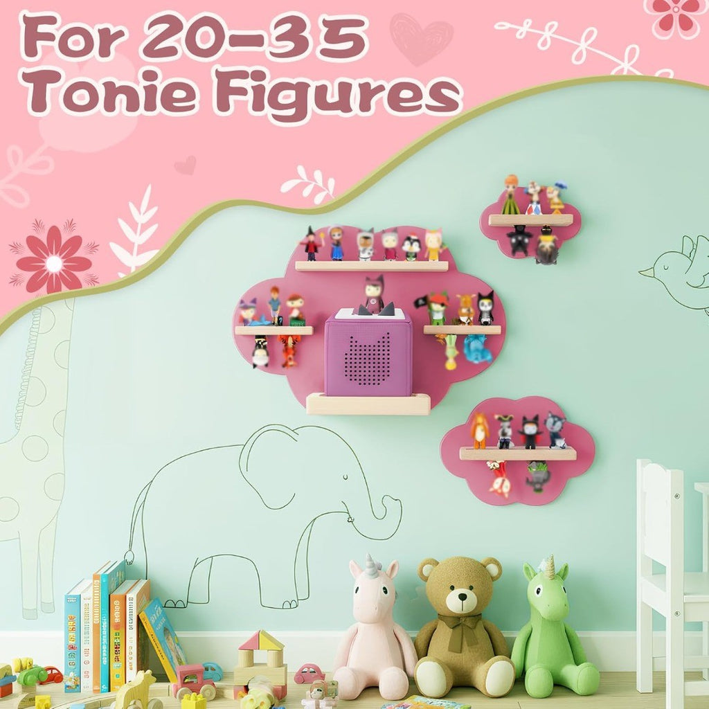 Tonie Shelf Cloud for 30-35 Figures, Set of 3 Tonies Shelves for Toniebox & Tonies Audio Figures, Boys and Girls | Perfect Tonie Storage in the Children's Room (Pink)