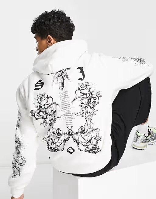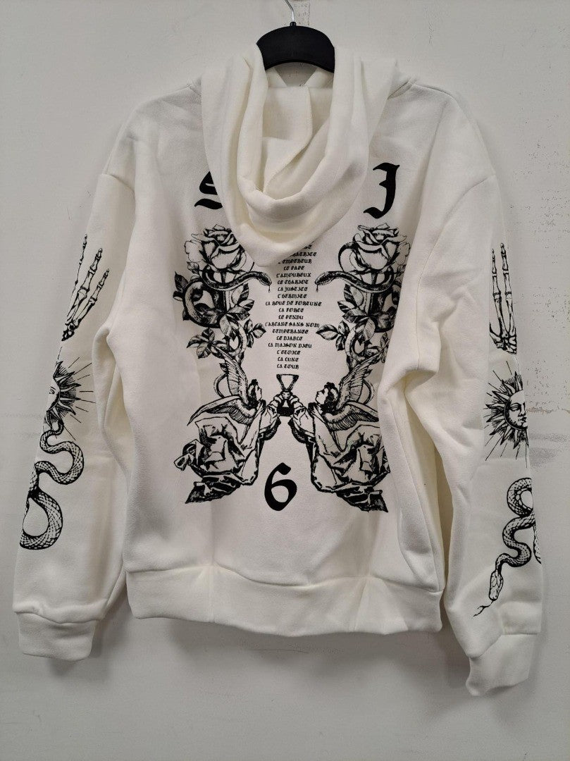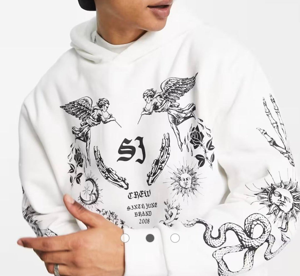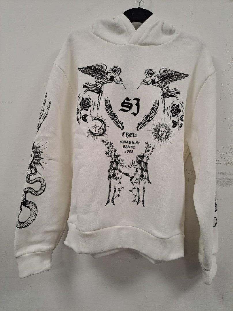 SIXTH JUNE co-ord Oversized Hoodie in White with all over Tattoo Print, size: L