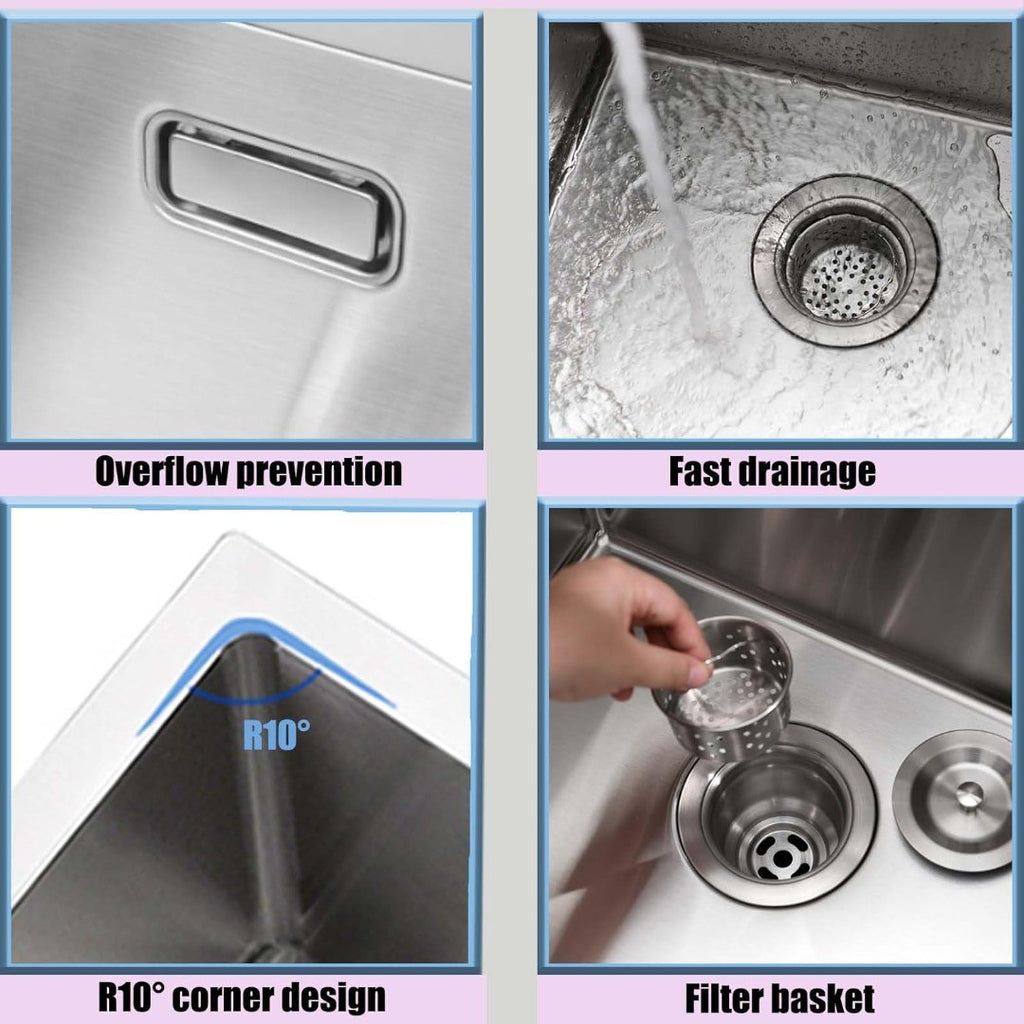 DURABLE AND DENT-RESISTANT: The square kitchen sink is made of high-quality stainless steel, which has good stability, anti-rust line, and greatly prolongs the service life. The sinks are constructed with premium 16-Gauge 304 stainless Steel prevents wear and tear, and provides exceptional durability.