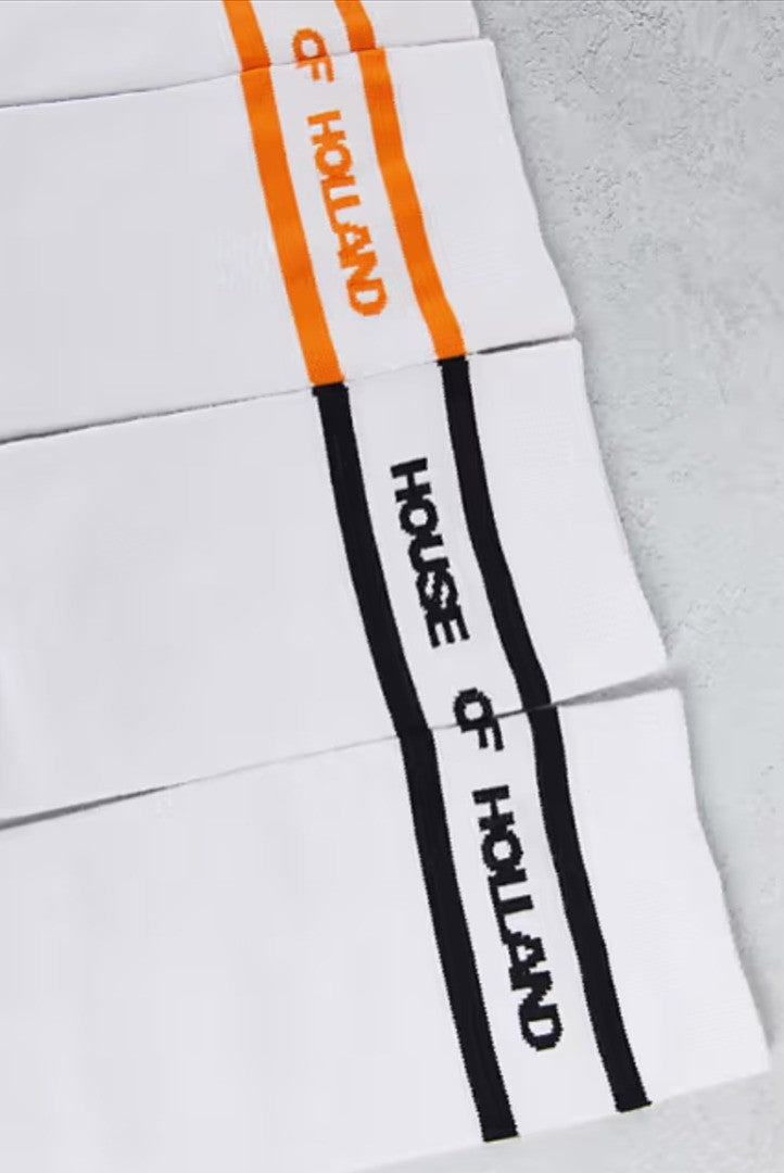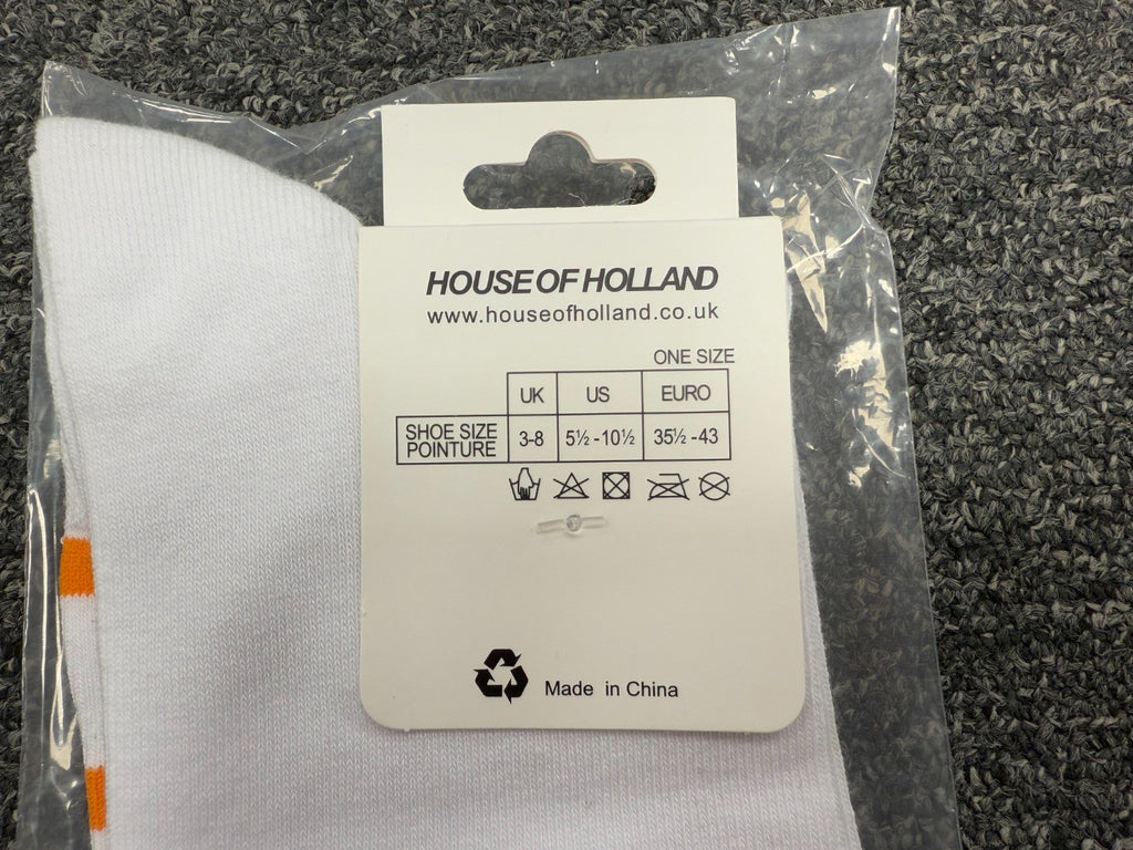 House of Holland 2 Pack Socks in White with Contrast Logo Stripe - One Size