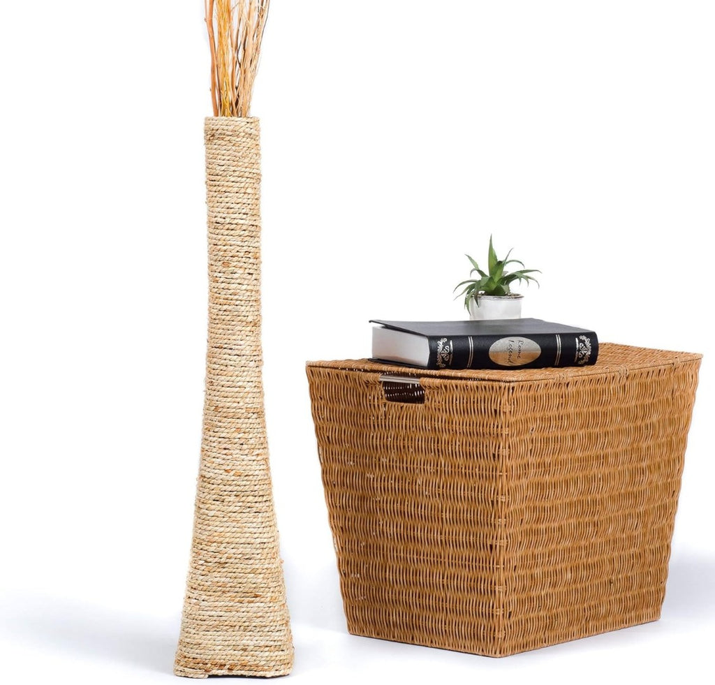 Tall Wicker Floor Vase Handmade 70cm Ecru
