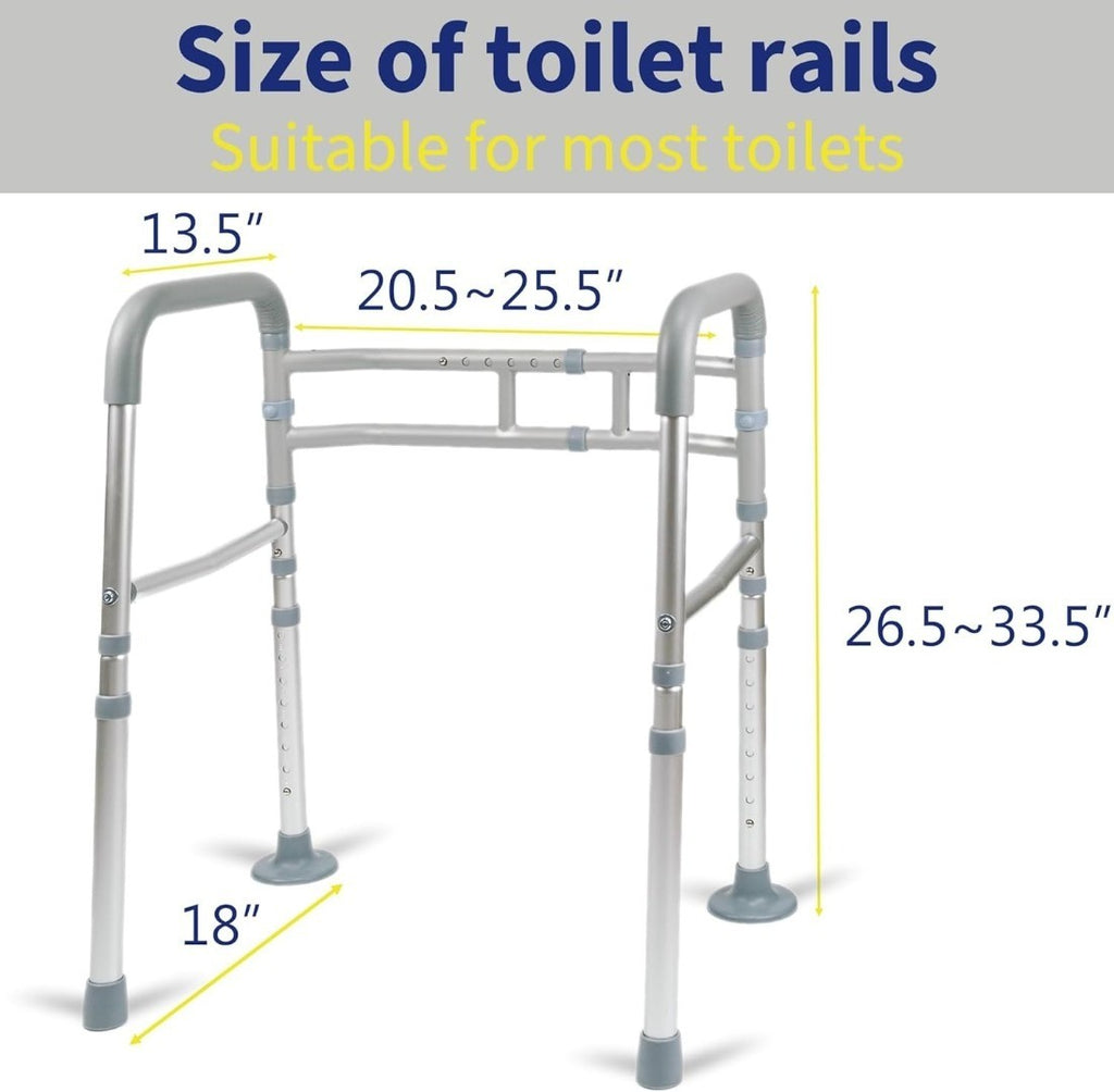 LandTale Toilet Safety Rails, Adjustable Toilet Rails for Adults, Toilet Assistance Handles Safety Frames, Fit for Most Toilet, Foldable & Portable
