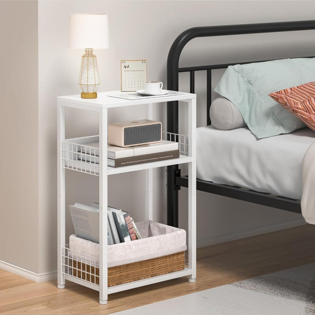 - [Pure white minimalist style] modern, matte white wooden planks and a white metal frame give our side table a minimalist look while maintaining a modern industrial style. You can categorize your books on the bottom shelf, or choose a larger single storage space for your collections, plants etc.