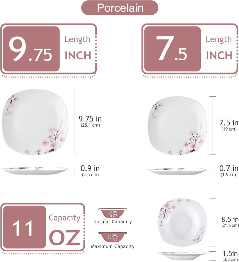 VEWEET Annie 18-Piece Dinner Set for 6 White/Pink Floral