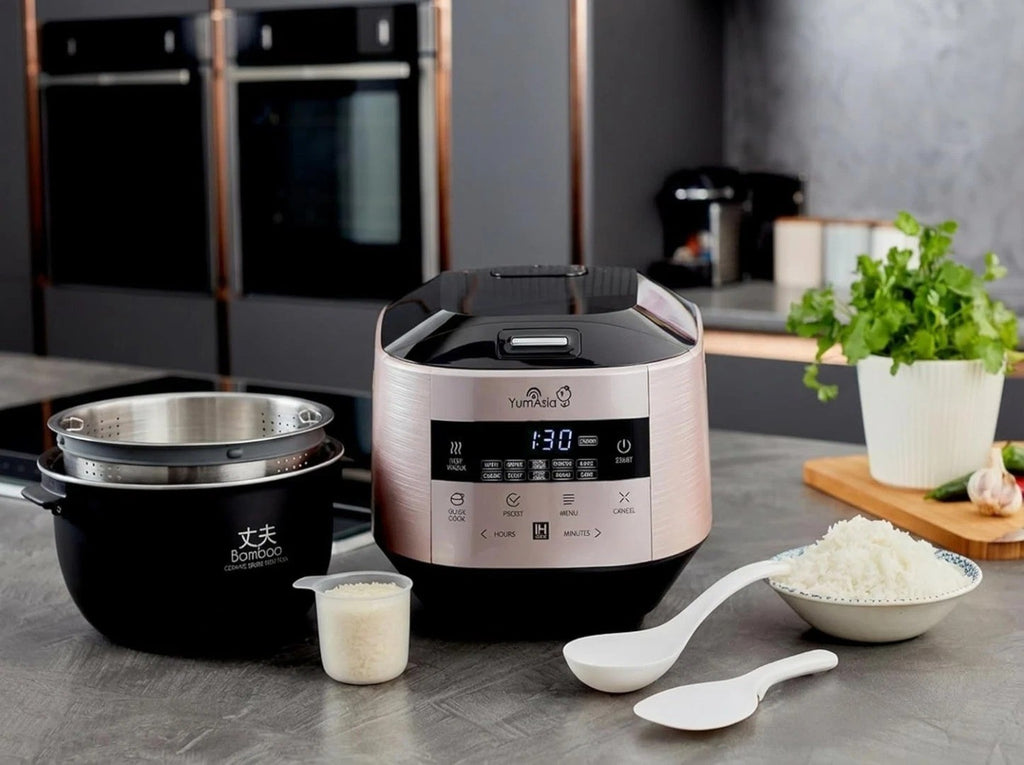 Yum Asia Bamboo Rice Cooker with Induction Heating (IH) and Ceramic Bowl (8 Cup, 1.5L), 7 Rice Cooking Functions, 4 Multicooker Functions, LED Display, 220-240V
